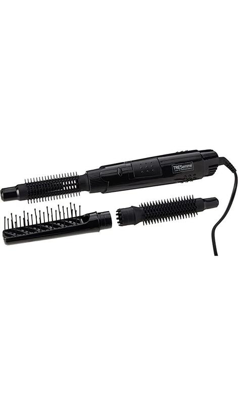 Английская вилка, переходник предоставляем! TRESemme Full Finish Горячий воздушный стайлер с 3 щетками, черный Торговая марка TRESemme Цвет Черный Источник питания Сетевой электрический Особенность Стиль, Горячее Тип волос Вьющиеся 300 Вт 3 сменные насадки-щетки 3 температурных режима, включая холодный Кнопка освобождения завитка