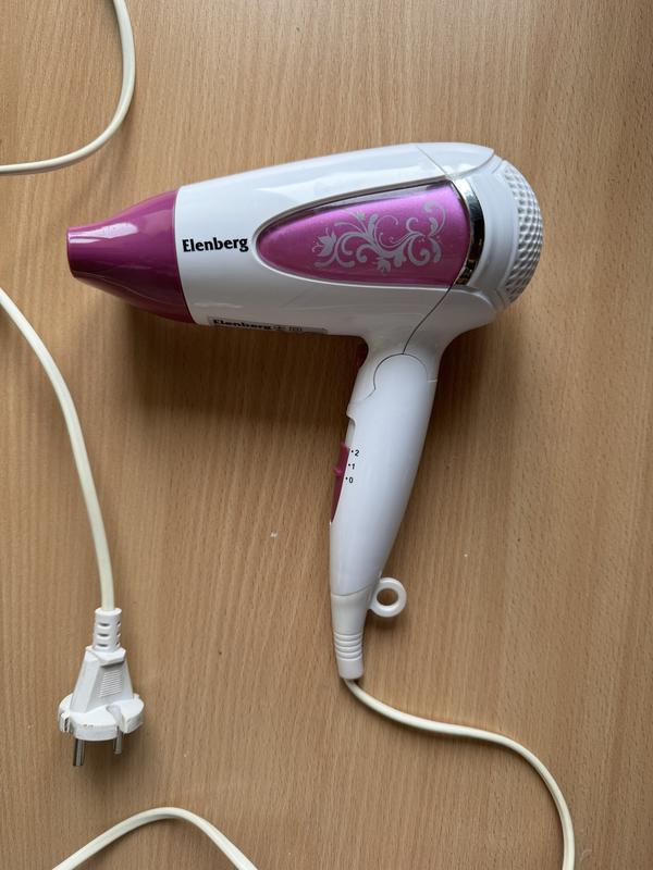 Фен Elenberg Мощность 1600 Вт К-ть скоростей 2 Особенности: защита от перегрева холодный воздух Дополнительно петля для подвешивания складная ручка
