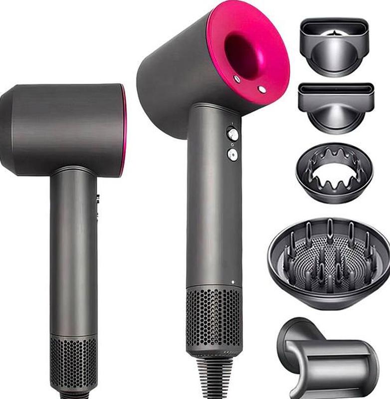 Профессиональный Фен для волос современный с 5 насадками серый с розовым, с ионизацией и турборежимом 5 насадок Подходит для всех типов волос: вьющихся и прямых, жестких и мягких. Фен для укладки обеспечит объем даже самых густых волосам. Ручной автоматический прибор с длинным практичным кабелем (1.7 м) отлично впишется в любой интерьер. Компактный и легкий инструмент. Характеристики: Режим: Ионизация, Подача холодного воздуха, Турбо режим Тип: Профессиональный Тип ионизации: Генератор ионов Мощность, Вт: 1600 Количество скоростей: 3 Количество температурных режимов: 3 Насадки: 5шт Скорость воздушного потока: 33 км/ч