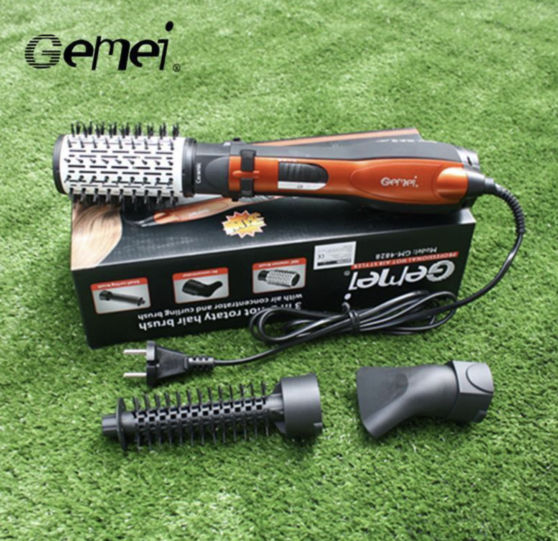 Фен-щетка, стайлер с насадками gemei gm-4828 с вращающейся насадкой