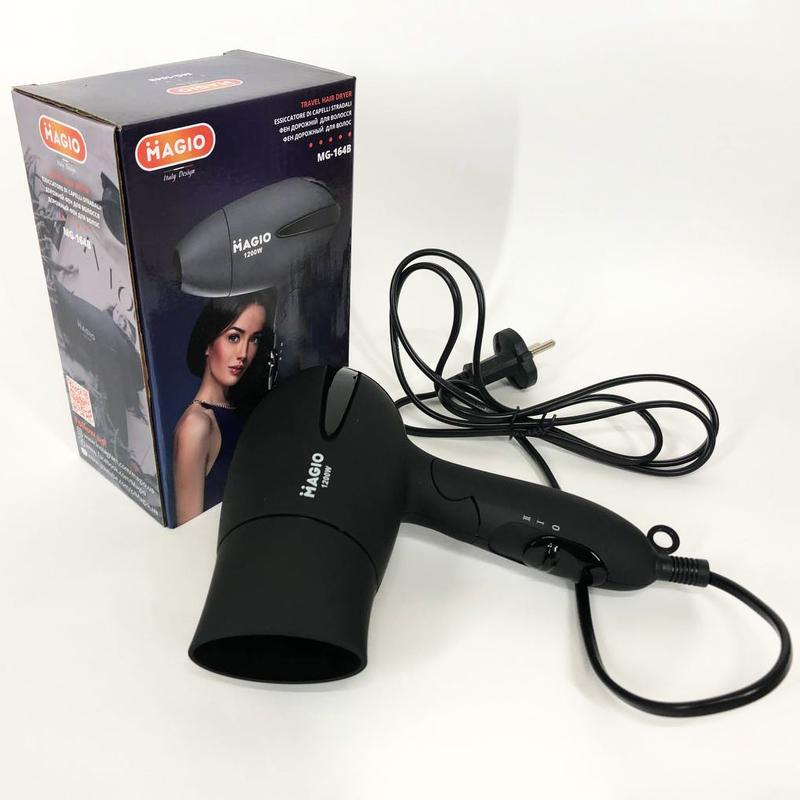 Фен MG-164B — це ідеальний компактний фен для подорожей та відряджень зі складною ручкою. Для своїх компактних розмірів він має досить високу потужність — 1200 Вт, тому фен швидко сушить волосся без перегріву. При цьому є можливість регулювання двох температурних режимів та двох швидкостей повітряного потоку, що дозволяє підбирати необхідні режими роботи під кожне укладання та тип волосся. Корпус фена виготовлений з якісного термостійкого пластику. Петелька для підвішування та насадка-концентратор створюють додаткову зручність при використанні. Характеристики: Тип: Компактний Кількість швидкостей: 2 Споживана потужність: 1200 Вт Насадка концентратора: 25 мм Застосування: Побутове Кількість температурних режимів/швидкостей повітряного потоку: 2/2 Особливості Петілька для підвішування Складена ручка Довжина кабелю живлення 1.7 м Вибір потужності min/max 220-240 Вт Рівень шуму 65 дБ Стінний утримувач Безпечна ізоляція: Є Габарити приладу (ВхШхГ): 15 х 21 см Габарити упаковки (ВхШхГ): 18 х 11.5 х 7.5 см Вага: 0.316 кг Вага в упаковці: 0.38 кг Колір: Чорний