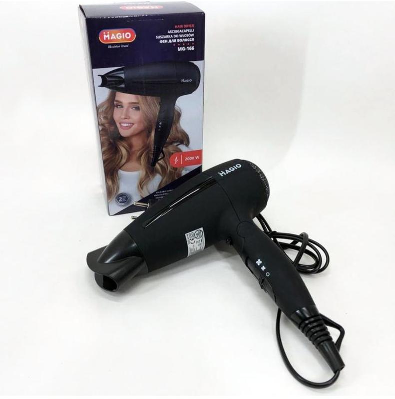 ЗАМЛЕНИЕ УКРПОНТАЮ ТОЛЬКО ИЗ-ОПЛАТОЮ на КАРТКЕ ПРОДАВЦА-!Компактный фен со сложной ручкой MG-166 от компании Magio с мощностью 2000 Вт гармонично сочетает в себе приятный дизайн и оптимальный набор функций, которые позволят быстро высушить волосы и создать стильную установку. Модель имеет две скорости работы с тремя температурными режимами, благодаря чему вы всегда сможете изменить как температурный режим, так и интенсивность подачи горячего или холодного воздуха. Насадка-концентратор, который идет в комплекте, придаст волосам объем у корней, а режим подачи холодного воздуха зафиксирует выходящий прическу. Петелька для подвешивания позволит удобно повесить фен в ванной, экономя пространство. Характеристики: Мощность 2000 Вт 3 режими температури 2 скорости воздушного потока Режим подачи холодного воздуха Насадка – концентратор Петелька для подвешивания Сложная ручка