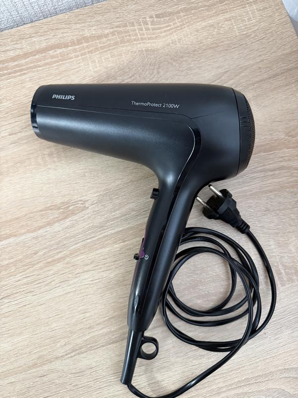 Philips ThermoProtect 2100W — побутовий фен для волосся Philips потужністю ~2100 Вт з технологією ThermoProtect, яка забезпечує делікатнішу сушку волосся при потужному потоці повітря.