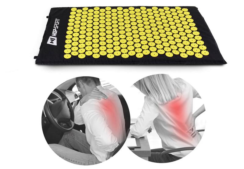 Характеристики: - Модель: HS-C072AM - Колір: чорний з жовтим - Розміри 70 х 41 х 2,5см (ДхШхВ) - Товщина мату: 2см - Вага: 455 г - Кількість кіл з шипами: 230 - Кількість точок тиску (шипів) на розетці: 27 - Кількість точок тиску на увесь мат: 6210 - Матеріал: 100% бавовна, АБС-пластик, губка Мат для акупунктури HS-C072AM жовтий Мат для акупунктури - це простий у використанні і ефективний засіб для релаксації, який завдяки своїй дії допомагає зняти напругу м'язів і покращує кровообіг. Рекомендується, зокрема, людям, що страждають від болю в спині, головного болю, а також в разі безсоння. Килимок HS-C072AM оснащений 6210 пластиковими шипами, розміщеними на спеціально розроблених розетках, які забезпечують інтенсивний розслабляючий масаж всього тіла. Продукт доступний в двох кольорах: чорний з сірим і чорний з червоним. Ви можете купити подушку для акупунктури Hop-Sport для килимка, завдяки якій ваш масаж стане ще більш комфортним. Ефективний масаж 230 матових пластикових кіл поміщені на килимок HS-C072AM. Кожне коло оснащене 27 шипами, які разом пропонують до 6210 точок тиску. Спеціальна форма і відповідна щільність розеток на килимку означає, що шипи забезпечують оптимальне стиснення тіла користувача. Універсальне використання Ви можете використовувати килимок HS-C072AM різними способами: лежачи на ньому, стоячи або сидячи. Розкладений на підлозі або на ліжку килимок дозволяє виконувати масаж спини і кінцівок, а складений навпіл або згорнутий в ролик стане відмінним інструментом для масажу шиї, поперекової області, ніг або рук. Просто помістіть килимок під обрану область тіла як мінімум на 5 хвилин. Збільшений кровообіг в результаті масажу може сприяти ефективному зменшенню болю і поліпшенню самопочуття. Використання килимка може принести полегшення в рази, серед іншого: болі в спині, болі в шиї і плечах, головного болю, безсоння, слабкого кровообігу, м'язової напруги, почуття стресу і втоми. Безпечні матеріали Мат для акупунктури HS-C072AM зроблений з 100% бавовни з м'якою губчастою вставкою. Масажні розетки виготовлені з безпечного пластика (АБС). Чохол на подушку килимка є знімним, тому при необхідності ви можете прати його вручну в м'якому миючому засобі (зверніть увагу - не періть наволочку в пральній машині і не сушіть її в електричній сушарці). Умови використання Час і частота масажу залежить від уподобань користувача, проте рекомендується проводити сеанси щодня - спочатку вони повинні тривати від 5 до 15 хвилин, потім поступово їх можна продовжувати. Рекомендована максимальна тривалість масажу - 30 хвилин в день. Коли ви спочатку використовуєте килимок в місці тиску шипів на тілі, ви можете відчувати дискомфорт і почервоніння шкіри, які пройдуть через короткий час. Якщо тиск масажних шипів занадто великий для вас, ви також можете нанести на килимок тонкий матеріал (наприклад, футболку або простирадло), щоб зменшити тиск шипів на шкіру. Протипоказаннями до застосування килимка є: порушення коагуляції, застосування антикоагулянтів і дерматологічні захворювання, при яких контакт з шкірою не рекомендується. Перед використанням килимка краще проконсультуватися з лікарем, щоб виключити протипоказання до застосування продукту.