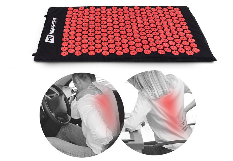 Характеристики: - Модель: HS-C072AM - Цвет: черный с красный - Размеры 70 х 41 х 2,5 см (ДхШхВ) - Толщина мата: 2 см - Вес: 455 г - Количество кругов с шипами: 230 - Количество точек давления (шипов) на розетке: 27 - Количество точек давления на весь мат: 6210 - Материал: 100% хлопок, АБС-пластик, губка Мат для акупунктуры HS-C072AM красный Мат для акупунктуры - это простое в использовании и эффективное средство для релаксации, которое благодаря своему действию помогает снять напряжение мышц и улучшает кровообращение. Рекомендуется, в частности, людям, страдающим от болей в спине, головных болях, а также в случае бессонницы. Коврик HS-C072AM оснащен 6210 пластиковыми шипами, размещенными на специально разработанных розетках, которые обеспечивают интенсивный расслабляющий массаж всего тела. Продукт доступен в двух цветах: черный с серыйм и черный с красныйм. Вы можете купить подушку для акупунктуры Hop-Sport для коврика, благодаря которой ваш массаж станет еще более комфортным. Эффективный массаж 230 матовых пластиковых кругов помещены на коврик HS-C072AM. Каждый круг оснащен 27 шипами, которые вместе предлагают до 6210 точек давления. Специальная форма и соответствующая плотность розеток на коврике означает, что шипы обеспечивают оптимальное сжатие тела пользователя. Универсальное использование Вы можете использовать коврик HS-C072AM разными способами: лежа на нем, стоя или сидя. Разложенный на полу или кровати коврик позволяет выполнять массаж спины и конечностей, а сложенный пополам или свернутый в ролик станет отличным инструментом для массажа шеи, поясничной области, ног или рук. Просто поместите коврик под выбранную область тела как минимум на 5 минут. Увеличенное кровообращение в результате массажа может способствовать эффективному уменьшению боли и улучшению самочувствия. Использование коврика может принести облегчение в случае, среди прочего: боли в спине, боли в шее и плечах, головной боли, бессонницы, слабого кровообращения, мышечного напряжения, чувства стресса и усталости. Безопасные материалы Мат для акупунктуры HS-C072AM сделан из 100% хлопка с мягкой губчатой вставкой. Массажные розетки изготовлены из безопасного пластика (АБС). Чехол на подушку коврика является съемным, поэтому при необходимости вы можете стирать его вручную в мягком моющем средстве (обратите внимание - не стирайте наволочку в стиральной машине и не сушите ее в электрической сушилке). Условия использования Время и частота массажа зависит от предпочтений пользователя, однако рекомендуется проводить сеансы каждый день - сначала они должны длиться от 5 до 15 минут, затем постепенно их можно продлевать. Рекомендуемая максимальная продолжительность массажа - 30 минут в день. Когда вы первоначально используете коврик в месте давления шипов на теле, вы можете испытывать дискомфорт и покраснение кожи, которые пройдут через короткое время. Если давление массажных шипов слишком велико для вас, вы также можете нанести на коврик тонкий материал (например, футболку или простыню), чтобы уменьшить давление шипов на кожу. Противопоказаниями к применению коврика являются: нарушения коагуляции, применение антикоагулянтов и дерматологические заболевания, при которых контакт с кожей не рекомендуется. Перед использованием коврика лучше проконсультироваться с врачом, чтобы исключить противопоказания к примене