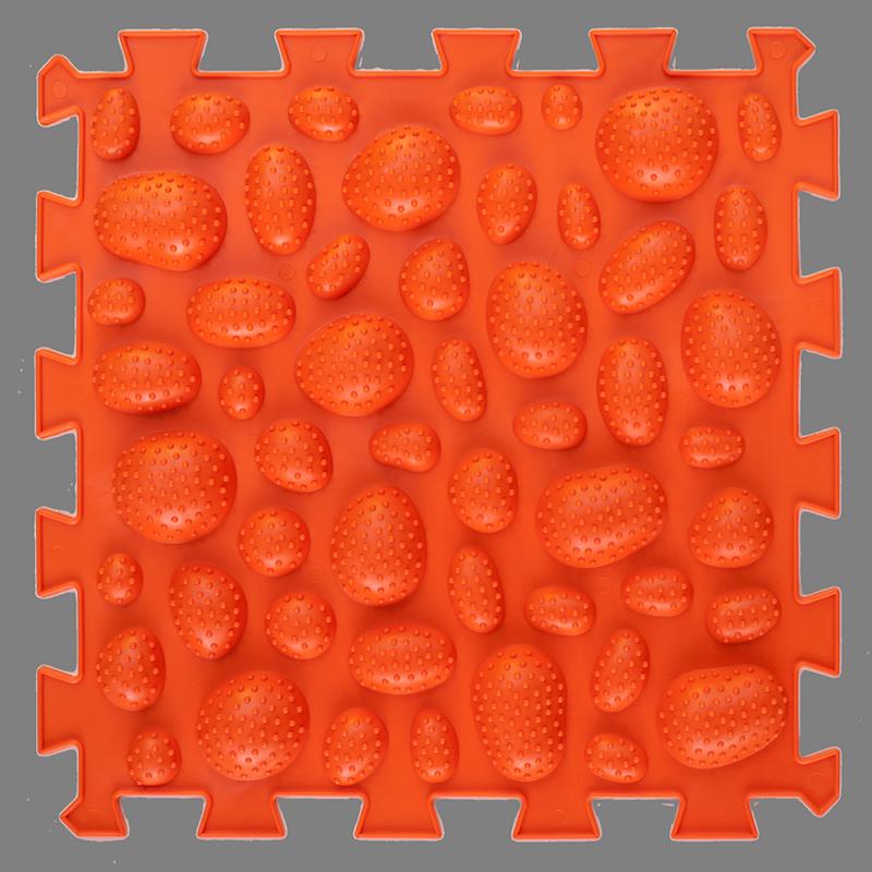 Масажний килимок складається з 1 елемента. Розмір: 26*26 см. Цей елемент із середньою інтенсивністю впливу. В наявності елементи різних форм і кольорів: Вежі, Жолуді, Травка, Галька, Морський, Гриби, Піраміди, Мушлі, Шипи, Шишки, Лотоси. Матеріал: ПВХ (безпечний, без шкідливих домішок, гіпоалергенний) Що може масажний килимок: сприяє правильному формуванню дитячої стопи; покращує тонус м'язів, зміцнюючи поздовжнє і поперечне склепіння стопи; активно впливає поліпшення кровообігу; знімає напругу в ногах, впливаючи на нервові закінчення. Застосування: профілактика плоскостопості, клишоногості, вальгусної та інших деформацій; профілактика варикозного розширення вен, артрозу та артриту; полегшення при відчутті втоми у ногах. Протипоказання: пошкодження шкірних покровів на поверхні стопи синдром діабетичної стопи трофічні зміни стопи, у тому числі трофічні виразки нестабільність гомілковостопного суглоба гнійничкові і запальні захворювання шкіри стоп Масажний килимок виробляється з гігієнічного, гіпоалергенного матеріалу на основі ПВХ. Також в наявності є килимок на 4, 6 та 8 елементів в коробці. Комплекс вправ: 1.Ходьба по килимку вперед-назад (7-9 повторень). 2.Початкове положення - стоячи, підніматися на носки (7-9 повторень). 3.Початкове положення – стоячи, перекочування з п’яти на носок (7-9 повторень). 4. Ходьба по килимку перехресним кроком (7-9 повторень). 5. Ходьба на внутрішній стороні стопи (7-9 повторень). 6. Ходьба на зовнішній стороні стопи (7-9 повторень). 7. Ходьба на носках (30-60 секунд). 8. Початкове положення – стоячи, присідання з опорою на всю стопу, не відриваючи п’яти від килимка (7-9 повторень). 9. Початкове положення – стоячи, утримання рівноваги на одній нозі (7-9 повторень). 10. Стрибки з пластини на пластину (7-9 повторень). 11. Початкове положення – стоячи на одній нозі, стрибки на одній нозі, чергуючи ногу (6-8 повторень). 12. Початкове положення - полу присід, ходьба по килимку (6-8 повторень). Ось на масажному килимку Ortek. Дитина розкладає пазли, вмикаєте відео - дитина займається! Займатись потрібно 3-5 разів на тиждень. Після місяця занять ви можете помітити результат тренувань у дитини. Вірогідно, м'язи стануть міцнішими, а хода більш впевненою.