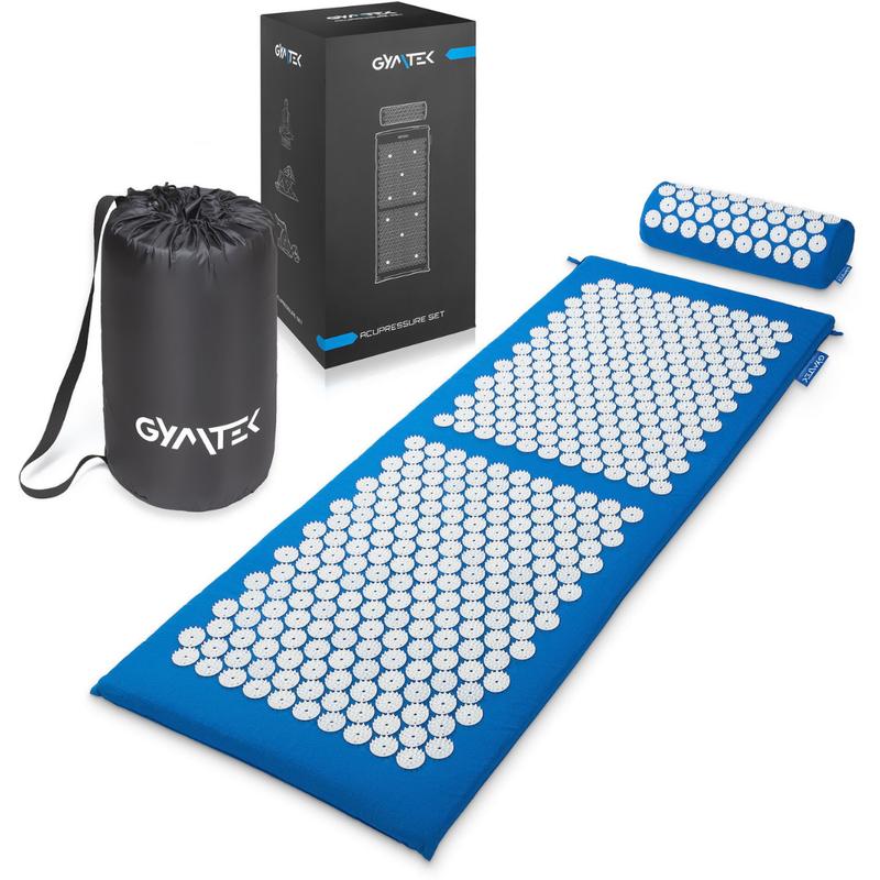 Акупунктурный массажный коврик с валиком Gymtek синий Набор акупунктурного коврика с валиком от Gymtek чрезвычайно положительно повлияет на ваше самочувствие. Вы очень быстро заметите положительные результаты! Коврик идеально подходит для людей, страдающих бессонницей и болями в спине. Вместе с ковриком вы избавитесь от мышечного напряжения и стимулируете кровообращение. Лечение в домашних условиях можно проводить несколькими способами: стоя, сидя, лежа в зависимости от части тела, которую вы хотите помассировать. Подушка-валик не только позаботится о шейном и поясничном отделах позвоночника, но также позволит провести точный массаж, например рук или ног. В комплект входит чехол, который позволит хранить и транспортировать коврик, не опасаясь механических повреждений. Преимущества использования акупунктурного массажного коврика - Снимает усталость и напряжение с мышц спины. - Нормализует кровообращение. - Компенсирует отсутствие физической нагрузки. - Полезно после длительных авиаперелетов и переездов. - Незаменим для людей, много времени проводящих за компьютером. - Помогает в период менопаузы и предменструального синдрома. - Эффективный для расслабления и снятия болей в мышцах спины, живота, плеч, бедер, голеней и стоп. - Применяется для воздействия на биологически активные точки и зоны на теле человека по методу рефлексотерапии Основные характеристики: - Материал: хлопок, полиуретан, ABS, пластик - Размер коврика: 118 х 46,5 х 2см - Размер подушки: 37 х 13 х 9,5см - Количество кругов с шипами: на коврике: 414, на подушке: 54 - Количество точек давления (шипов) на 1 розетке: всего 33 шт - Количество точек давления: 13 662 мат, 1 782 подушка - Вес набора: примерно 1кг - Чехол коврика и подушки съемный, застегивается на молнию - Набор упакован в черную сумку на шнурке с ручкой - Гарантия: 24 месяца (домашнее использование) Массажные шипы Акупунктурный коврик оснащен специальными вкладками с шипами и в этом заключается секрет. Коврик имеет 13662 массажных точек, расположенных на розетках, что обеспечивает оптимальное тиснение на тело пользователя. Универсальное использование Люди с болями в спине, головными болями и бессонницей обязательно заметят положительный эффект от его использования. Однако это не только поможет избавиться от боли и мышечного напряжения, но и улучшит кровообращение, а побочным эффектом станет выброс эндорфинов. Лечение в домашних условиях можно проводить несколькими способами. Стоя, сидя, лежа в зависимости от части тела, которую вы хотите помассировать. Подушка не только позаботится о шейном и поясничном отделах позвоночника, но также позволит проводить точный массаж, например, рук или ног. Уменьшает стресс и улучшает настроение Набор для точечного массажа оказывает положительное влияние на настроение. Благодаря короткому релаксу вы расслабитесь и отдохнете. Вы можете быть уверены, что это положительно отразится на вашем здоровье в целом. Легко хранить и транспортировать В комплект входит удобный чехол, позволяющий хранить и транспортировать коврик. Вы предохраните его от грязи и возможных повреждений. Теперь коврик для точечного массажа всегда будет с вами!