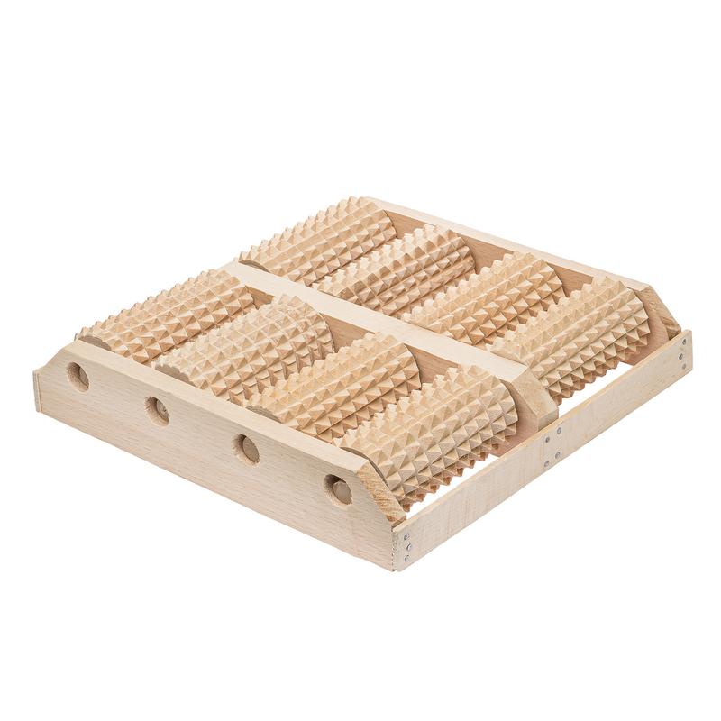 Массажер для ног деревянный зубчатый на 8 роликов для двух ног 25.5х25.5х5 см