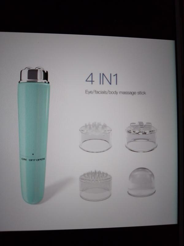 Масажер 4в1 для обличчя. Працює від батарейок АА.Масажер запакований- без батарейок .Омолоджуючий масажер допомагає зменшити темні круги під очима,зморшки на обличчі, кращий ефект з використанням крему,есенції ( маленька насадка з шипами) .Масаж голови- при головних болях,безсонні. (Велика насадка з шипами) .Насадка у формі квітки- масаж талії, ніг, плечі ,шиї. Розмір 10*2,5*2,5.Оплата на карту.Повернення немає.