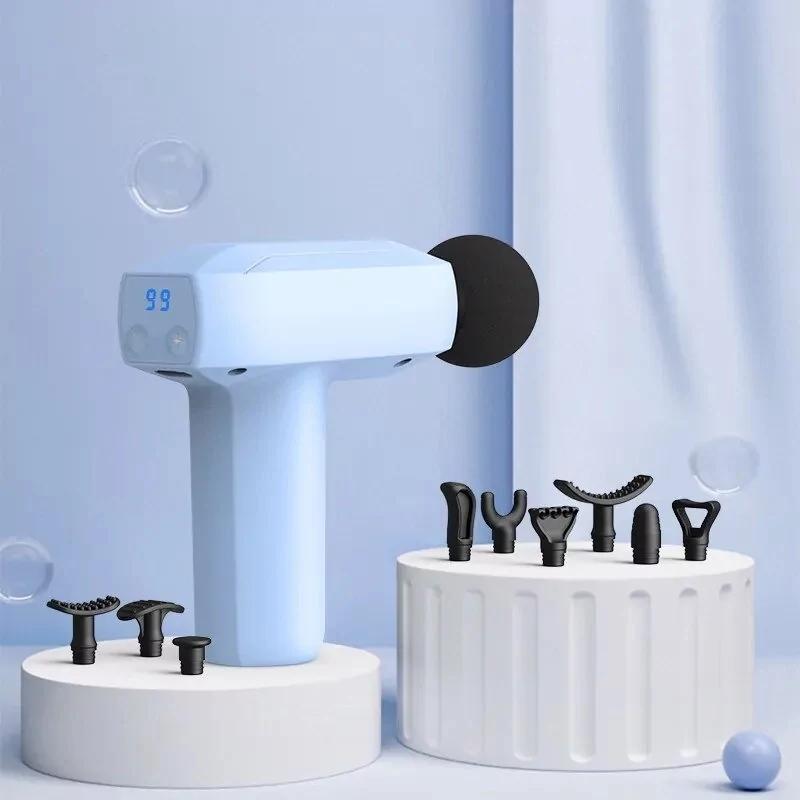 Перкуссионный массажный пистолет fascial gun yj03 с 8 насадками для глубокого мышечного ма...