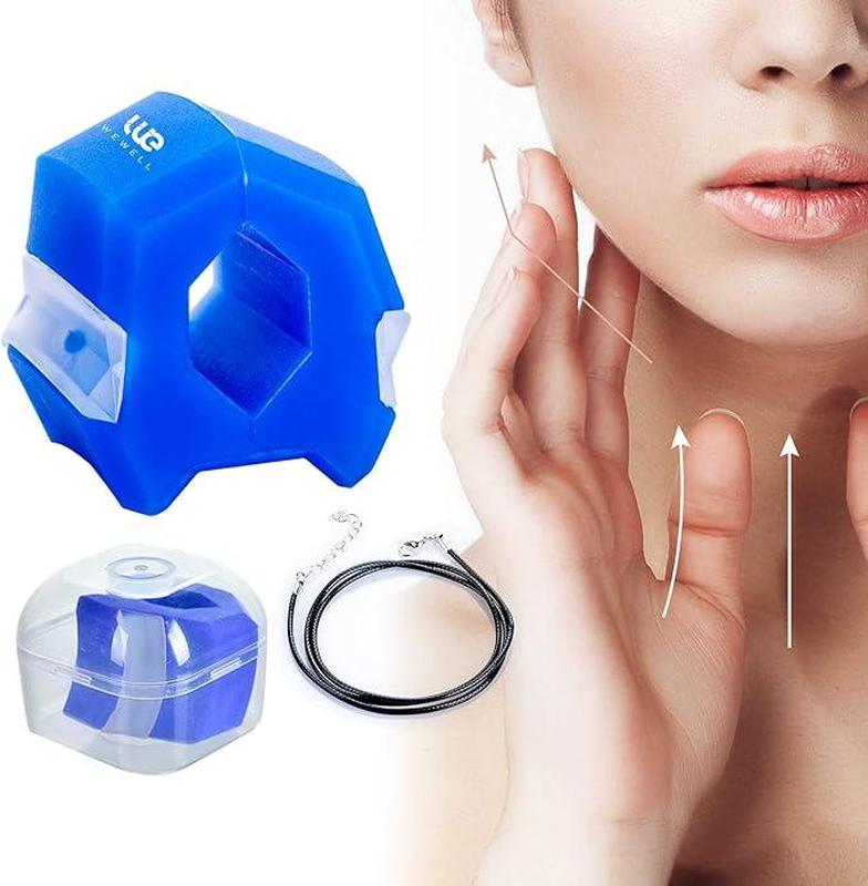 Жевательный тренажёр Wewell улучшает линию подбородка и укрепляет мышцы челюсти и шеи, что позволяет выглядеть моложе. Стимулирует более 55 мышц лица и шеи. Формируйте челюсть с помощью тренажера Wewell -- преимущества включают в себя четко очерченную челюсть, улучшенную циркуляцию крови, более подтянутое лицо и снятие стресса. Удаляет двойной подбородок и дряблые мышцы лица. Кроме того, жевательный тренажёр уменьшает тягу к еде: многократное жевание подавляет аппетит и приводит к уменьшению тяги к еде, поэтому утоляйте голод, сжигая больше калорий и съедая меньше. Синий тренажёр Wewell имеет сопротивление 40 фунтов (18 кг) и подходит всем. Тренажёр Wewell удобен и может использоваться в любое время и в любом месте, хоть за рабочим столом, хоть в спортзале, хоть за рулём. Результаты будут видны всего за 10 минут использования в день. Материал: пищевой силикон. В комплекте шнурок, чтобы носить тренажер на шее, и прозрачный футлярчик.