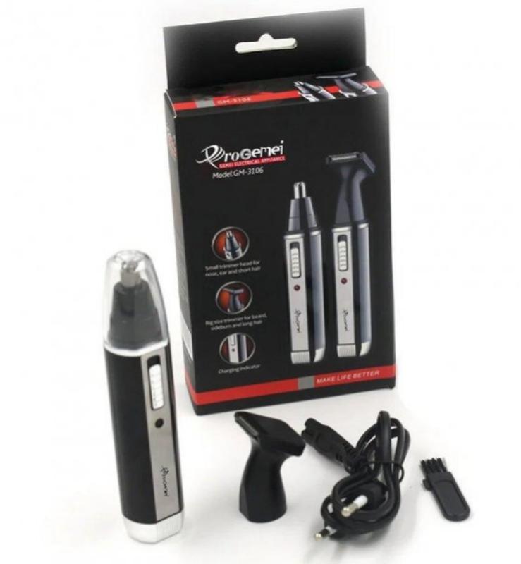 Триммер мужскойдля носа и ушей Gemei GM-3106 2 в 1 ― предназначенный для удаления нежелательных волос на лице, в носу или ушах, а также можно использовать для окантовки затылка, висков. В комплект входят 2 насадки: Насадка для стрижки волос в носу и ушах Насадка для окантовки Переваги: Компактна і проста у використанні. Легка і якісна. Леза з нержавіючої сталі. Вбудований акумулятор Не дратує шкіру. Легко очищається за допомогою щіточки Комплектація: Насадка для окантовки. Насадка для видалення волосся у вухах та носі. Щіточка для чищення насадок. Кабель для зарядки
