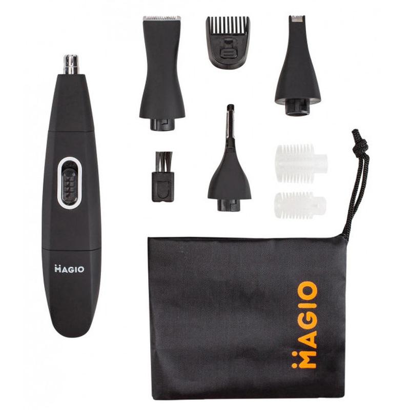 Многие мужчины бреются каждый день; но игнорируют волосы в носу; ушах; на бровях; висках; шеи и поддерживание бороды в ухоженном виде. Универсальный триммер MG-913 идеальное решение для удаления нежелательных волос и моделирования волос; очень удобный и многофункциональный; позволит подстричь волосы на голове; удалить волосы из ушей и носа; а также привести в порядок и постоянно поддерживать в идеальном состоянии брови; усы и бороду. Универсальный триммер MG-913 имеет красивый дизайн с Soft touch покрытием; компактный и удобный в руке. Низкий уровень вибрации и шума. Работает от одной батареи типа АА (входит в комплект); а также является водонепроницаемым; что облегчает использование и позволяет пользоваться им в душе. Лезвия выполнены из нержавеющей стали с технологией Protect cut; что обеспечивает безопасную и комфортную работу с триммером и защищает кожу от раздражения. Лезвие после использования можно чистить с помощью щеточки; которая идет в комплекте; а также можно промывать под струей воды. Съемные и моющиеся насадки легко снимаются и очищаются. Полезный аксессуар; такой как мешочек; облегчает хранение всего комплекта триммера и является идеальным вариантом для путешествий. Совет – после использования триммера в воде; обязательно нужно вытереть прибор насухо чтобы предотвратить рост бактерий и обеспечить длительную работу. Универсальный триммер MG-913 имеет 4 насадки: насадка для стрижки в носу и ушах (1;5 мм). С помощью этой насадки можно быстро; безопасно и безболезненно удалить нежелательные волосы в носу и ушах. Абсолютно не повреждает нос и уши и их кожу. Совет – во избежание травмирования носа и барабанной перепонки не стоит устанавливать насадку в нос и ухо глубже 1 см. Насадка–тонкий триммер для создания контуров бороды или эспаньолки (0;8 мм). С помощью такой насадки можно деликатно и аккуратно моделировать разнообразные стили и формы бороды; в том числе и эспаньолки; позволяет точно и ровно подстричь любой нужный контур. Насадка для бороды; висков и шеи (0;8 мм) с насадкой-расческой для регулирования длины (3; 4; 5; 6; 7 мм). Достаточно полезная и нужная насадка; с помощью которой с лёгкостью можно проработать такие зоны; как виски (бакенбарды); борода и шея. Идеальный вариант для стрижки любой желаемой длины бороды; благодаря специальной насадке-расческе с регулированием длины. Совет – для моделирования висков проводить устройством обязательно сверху вниз; а при моделировании шеи – снизу вверх! Насадка для стрижки бровей (0;5 мм) с насадками-расческами для регулирования длины. Идеальный вариант для моделирования бровей; так как благодаря насадкам- расческам в наборе; есть возможность регулировать разную длину бровей. Насадка очень удобна в использовании; позволяет очень легко произвести коррекцию бровей. Совет – изначально желательно выбрать насадку-расческу с большей длиной; чтобы не срезать больше волос чем нужно; а если хочется удалить больше волос; тогда заменить на ту; что с меньшей длиной. Универсальный триммер MG-913 4 в 1 удовлетворит любые потребности в уходе за собой! Характеристики - Тип: для носа и ушей - Лезвие из нержавеющей стали - Питание: от батарейки типа АА (1шт) - Насадки: 4 шт - Цвет: черный