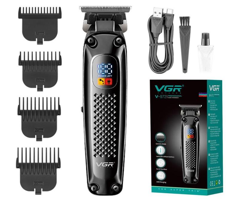 Тример VGR V-972 – современный и функциональный инструмент для стрижки волос и бороды, сочетающий мощность, эргономичный дизайн и удобство в использовании. Мотор работает плавно и эффективно, обеспечивая аккуратный и ровный срез без раздражения кожи. Лезвия из нержавеющей стали острые и долговечные, а LED- дисплей отображает уровень заряда, напоминает о необходимости масла и контролирует рабочее состояние устройства. Благодаря USB-зарядке и гибридному режиму питания триммер удобно использовать как дома, так и в дороге. Характеристика: - Мощность: 5 Вт - Лезвия: из нержавеющей стали - Акумулятор: 1400 mAh - Время работы от аккумулятора: до 180 мин - Время зарядки: около 2 ч - Питание: от аккумулятора и сети - Регулировка длины: 4 установки длины Комплектация: - Тример VGR V-972 - 4 насадки-гребня - USB-кабель для зарядки - Щеточка для очистки - Масло для лез - Упаковка/ Инструкция *Внешний вид и комплектация могут отличаться от изображения на сайте и зависят от поставки.