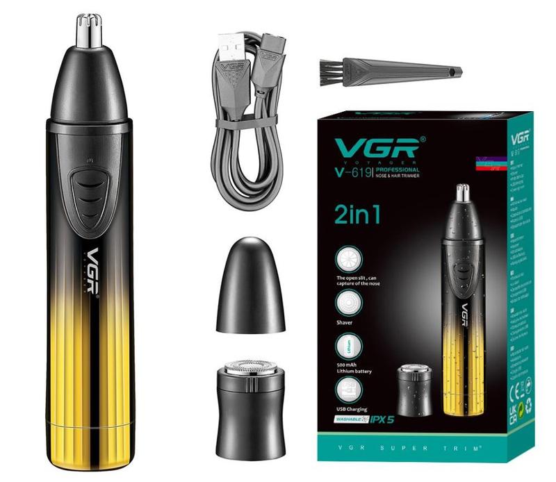Тример VGR V-619 2 в 1 — універсальний пристрій, який поєднує функціональність, компактність і сучасний дизайн. Завдяки двом змінним насадкам він легко впорається з небажаним волоссям у носі та вухах, а також дозволить акуратно підкоригувати бороду чи контури. Потужний мотор та гострі леза з нержавіючої сталі забезпечують точний і безпечний зріз навіть у важкодоступних зонах. Вбудований акумулятор ємністю 1200 mAh гарантує до 120 хвилин автономної роботи, а зручне USB-Type-C заряджання дозволяє підключати тример до павербанку, ноутбука чи адаптера. Компактні розміри та ергономічна форма роблять його зручним у дорозі й практичним для щоденного використання. Характеристика: - Потужність: 5 Вт - Леза: з нержавіючої сталі - Акумулятор: 1200 mAh - Час роботи від акумулятора: до 120 хв - Час заряджання: близько 2 год - Живлення: від акумулятора та мережі - Регулювання довжини: 2 установки довжини Комплектація: - Тример VGR V-619 2 в 1 - 2 насадки - USB-Type-C кабель для зарядки - Щіточка для чистки насадок та лез - Захисний ковпачок - Упаковка/Інструкція *Зовнішній вигляд і комплектація можуть відрізнятися від зображення на сайті й залежать від поставки.