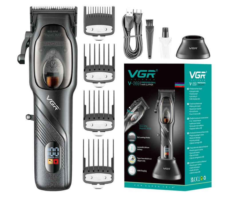 Аккумуляторная машинка для стрижки (clipper) VGR V-269, 4 насадки, LED display VGR V-269 имеет очень мощный мотор с 9000 оборотами в минуту , что делает ее идеальным инструментом для стрижки любых типов волос и который обеспечивает идеально ровные и чистые линии. Она также поставляется с разными насадками для более точной и удобной работы. Вы можете выбрать нужную длину стрижки и легко поменять насадки. Характеристики: - Фирма: VGR; - Модель: V-269; - Аккумулятор; - Тип аккумулятора: li-ion ; - Емкость аккумулятора: 2500 mAh ; - Мотор: 9000 об/мин; - Сменные насадки: 4 штуки (3/6/9/12 мм) ; - Регулировка среза ножей: 0.8 мм, 1.2 мм, 1.6 мм, 2.0 мм ; - DLS покрытие лезвий ; - Время работы от аккумулятора при полном заряде: 150 минут ; - Время до полной зарядки аккумулятора: 3 часа ; - LED-дисплей ; - Минимальная длина среза: 0.8 мм; - Максимальная длина среза: 12 мм; - Материал: ABS пластик. Комплектация: - Машинка для стрижки VGR V-269 ; - Сменные насадки - 4 штуки (3/6/9/12 мм); - Защитный колпачок на лезвия; - Щеточка для очистки; - USB-кабель для зарядки; - Подставка для хранения (с возможностью зарядки на ней); - Масло для смазки лезвий; - Инструкция (на английском языке); - Фирменная заводская упаковка.
