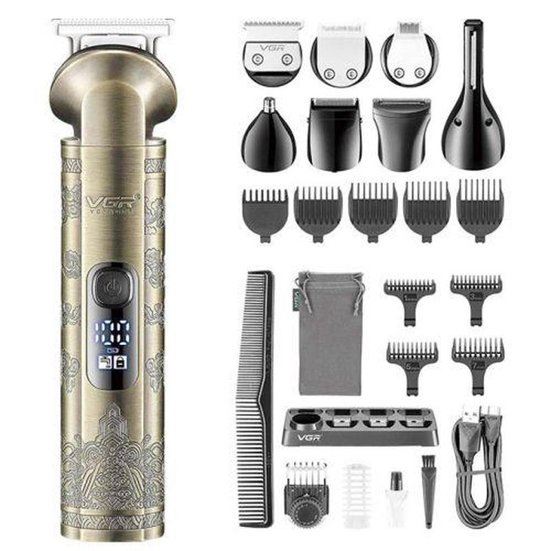 Набор для стрижки VGR 8 в 1 V-110, 17 насадок, LED display VGR 8 в 1 V-110 универсальное решение для ухода за бородой, усами и волосами. Компактный и беспроводной, он работает до 3 часов от аккумулятора и заряжается всего за 90 минут. В комплекте - 17 насадок, позволяющие выбрать длину стрижки до 7мм. Лезвия из нержавеющей стали и металлический корпус обеспечивают надежность и долговечность устройства. Характеристики: - Фирма: VGR; - Тип питания: Аккумулятор; - Тип аккумулятора: li-ion; - Время до полной зарядки аккумулятора: 1,5 часа; - Время работы от аккумулятора при полном заряде: 180 минут; - Влагозащита: Неизвестно; - Материал лезвий: нержавеющая сталь;