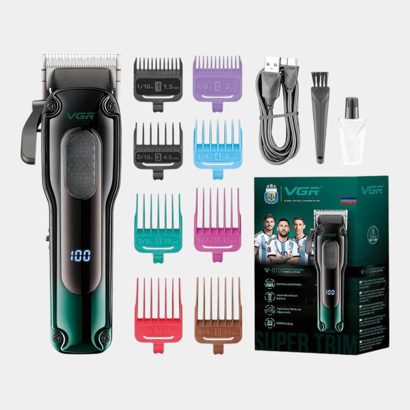 Комплексный набор по уходу 13 в 1 VGR PROFCOMPLEX со съемными насадками. Многофункциональный прибор для комплексного ухода за волосами и телом. В триммере для бритья используются качественные ножи из нержавеющей стали, которые отлично справятся со своей задачей и подойдут для любого типа волос. Универсальный триммер очень прост в использовании, сменные насадки легко меняются на насадку шейвер или другие поставляемые в комплекте. Тример оборудован интеллектуальным светодиодным дисплеем, изображающим процент заряда батареи и состояние зарядки. В сочетании с быстрой зарядкой через USB он обеспечивает до 150 минут использования. Автономность благодаря удобной зарядке через ноутбук, блок питания или любой USB-порт 5V/1A, гарантирует, что вы всегда будете готовы к первоклассному уходу, для зарядки в комплекте поставляется USB-кабель. Благодаря степени защиты IPX7 триммер защищен от воздействия воды, что делает его удобным в использовании даже во влажных условиях. Данный набор по уходу сочетает в себе несколько устройств: - Профессиональный полноразмерный триммер для стрижки волос, бороды и усов; - 4 насадки для стрижки; - Регулирующая насадка 1-9 мм. - Узкий триммер для художественных элементов стрижки и окантовки; - Тример для ушей и носа; - насадка Шейвер - Насадка для тела (гребные 1/3/6) Характеристики: - Количество насадок в наборе: 13 шт; - Тип питания: аккумулятор. - Время работы: до 150 минут; - Ножи из нержавеющей стали; - LED-дисплей; - Аккумулятор: литиевая батарея 1500 mAh; - Индикация дисплея, отображающего количество заряда, установленную скорость, загрязнение лезвий; - Время зарядки 210 мин; - Мощность: 5 Вт. Комплектация: - Машинка для стрижки - Насадки для стрижки волос: 4 шт. (3/6/9/12); - Регулирующая насадка - 1 шт - Насадка для тела: 1 шт. (регулируется на 1/3/6 мм) - Узкий триммер для художественных элементов стрижки и окантовки; - Тример для ушей и носа; - Насадка для бритья - шейвер; - Масло для смазки лезвий; - Щеточка для очистки прибора; - Подставка для хранения; - Расческа; - Кабель для зарядки прибора; - Инструкция (на английском языке); - Фирменная упаковка.