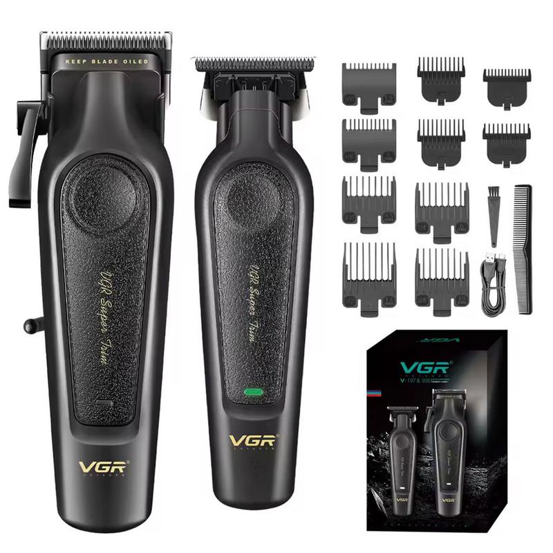 Комплект VGR 2 в 1 V-197 & 995 -- это универсальный набор для комплексного ухода за волосами, включающий аккумуляторную машинку для стрижки (clipper) и триммер. Корпус приборов выполнен из прочного материала, обеспечивая стильный внешний вид, удобство удержания и надёжность в эксплуатации. Приборы подходят для использования дома и в поездках. Машинка для стрижки и триммер VGR 2 в 1 V-197 & 995 оснащены высококачественными лезвиями из нержавеющей стали, которые гарантируют точный и аккуратный срез. Оба устройства работают от встроенного аккумулятора, обеспечивая автономную работу без привязки к сети. Машинка оснащена регулируемыми насадками для стрижки различной длины, а триммер идеально подходит для окантовки, ухода за бородой, усами и волосами в носу и ушах. Комплект VGR 2 в 1 V-197 & 995 удобен в использовании благодаря эргономичному дизайну и компактным размерам. Универсальность, стильный внешний вид и высокая производительность делают приборы практичным и надёжным решением для ежедневного ухода за волосами. Характеристики: - Модель: VGR 2 в 1 V-197 & 995 - Время работы: до 200 минут - Время зарядки: 3 часа - Аккумулятор: литий-ионный - Материал лезвий: нержавеющая сталь Комплектация: - Комплект для стрижки VGR 2 в 1 V-197 & 995 - Комплект аксессуаров - USВ-кабель - Инструкция