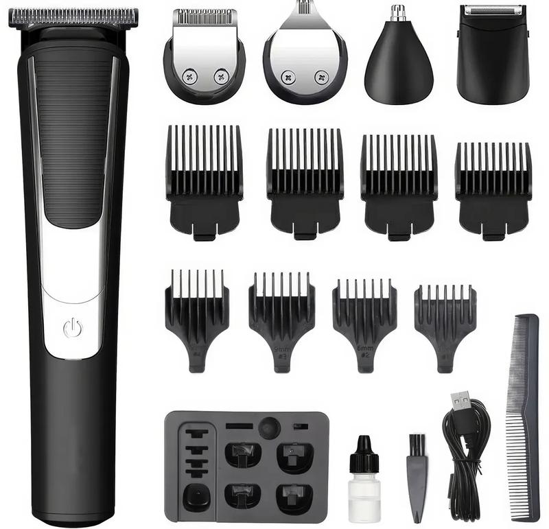 Аккумуляторная машинка 18 в 1 с набором насадок и аксессуарами RAF R.4202 На подставке Аккумуляторная машинка для стрижки RAF R.4202 — это многофункциональный парикмахерский набор, который поможет ухаживать за волосами, бородой, лицом и телом. В комплект входит 5 сменных головок и 8 гребней (4 для машинки и 4 для триммера), что позволяет создавать разнообразные образы и поддерживать аккуратный внешний вид. Лезвия из нержавеющей стали обеспечивают высокую точность и долговечность, а влагозащищенная конструкция облегчает уход за устройством. Компактные размеры и возможность зарядки через USB делают машинку удобной для домашнего использования, поездок и профессиональной работы. Преимущества: Многофункциональность: Подходит для стрижки волос, ухода за бородой, удаления волос в носу и ушах, а также для обработки тела. Надежные лезвия: Самозатачивающиеся лезвия из нержавеющей стали обеспечивают точность и долгий срок службы. Простота ухода: Съемные головки можно легко мыть под струей воды, что гарантирует гигиеничность. Долгое время работы: Аккумулятор емкостью 600 мАч обеспечивает до 60 минут автономной работы. Универсальная зарядка: USB- кабель позволяет заряжать устройство от сети, компьютера или пауэрбанка. Комфорт и безопасность: Скошенные края головок защищают кожу от царапин. Эргономичный дизайн: Легкий корпус и компактные размеры идеально подходят для путешествий и хранения. Характеристики: Тип: машинка для стрижки Количество насадок: 5 головок + 8 гребней Материал лезвий: нержавеющая сталь Питание: аккумулятор с зарядкой через USB Емкость аккумулятора: 600 мАч Мощность: 5 Вт Время работы: до 60 минут Особенности: Быстрая зарядка Дисплей с индикатором уровня заряда Съемная моющаяся головка Компактный дизайн Цвет: черный Комплектация: машинка, 5 сменных насадок, 8 гребней, расческа, щетка для чистки, смазочное масло, подставка, USB-кабель.