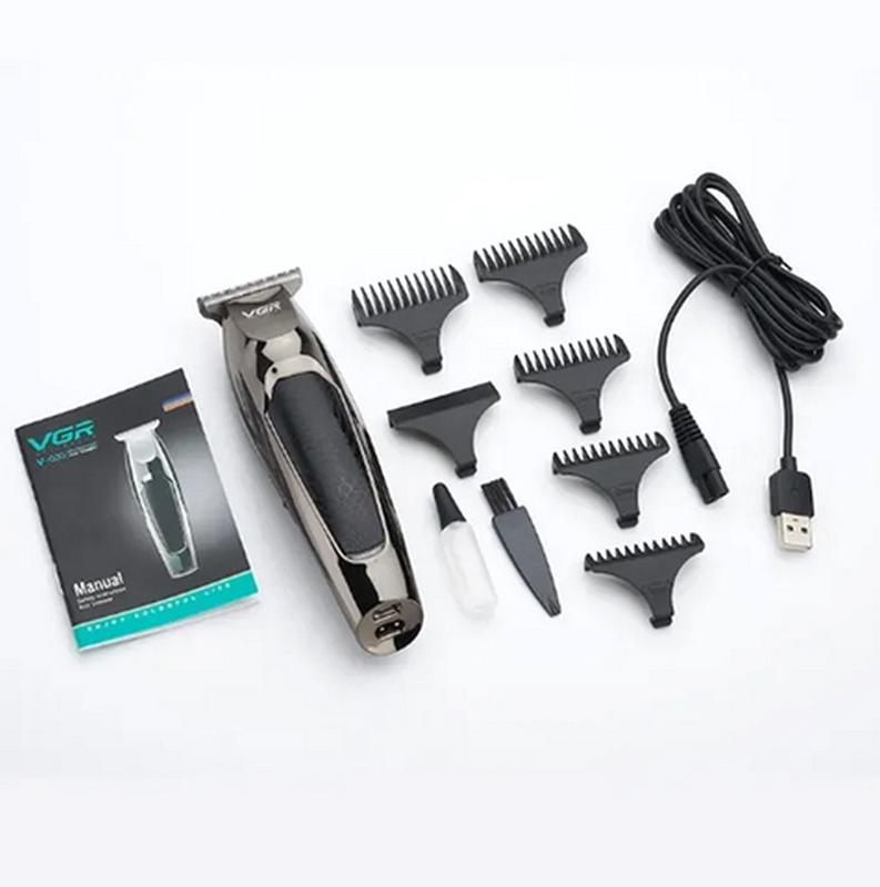 Домашняя машинка аккумуляторная для стрижки волос, Точная машинка-триммер для стрижки, NST Триммер VGR является незаменимым инструментом в работе мастеров моделирования стрижек. Он предназначен для профессионального использования в парикмахерских, салонах красоты, барбершопах и разрешен к применению в домашних условиях. Триммер VGR отличается прочным корпусом, устойчивым к воздействию вибрации, низким уровнем шума, стильным дизайном, плавным ходом острых лезвий, удобством и длительным сроком эксплуатации. Особенности: - Со сменными насадками возможно придать идеальную форму бороде и усам; - Оборудован лезвиями из нержавеющей стали, гарантирующими аккуратный ровный срез она аккуратно срезает волоски, не оставляя каких-либо следов на чувствительной коже; - Аккумулятор позволят триммеру работать автономно в течение 120 минут; - Он функционален и прост в управлении; - Прочный корпус, устойчивый к воздействию вибрации, низкий уровень шума. Ход - очень плаваний; - Стильный дизайн; - Удобно ложится в руке и имеет лёгкий вес; - Подходит как для детей, так и для взрослых; - Идеальный помощник в командировках. Характеристики: - Тип: Триммер для бороды и усов; - Тип питания: Аккумулятор; - Мощность: 5 Вт; - Аккумулятор: 600 mAh; - Время до полной зарядки аккумулятора: 120 минут; - Время работы от аккумулятора: 120 минут; - Материал лезвий: нержавеющая сталь; - Регулировка длины: сменные насадки; - Количество сменных насадок: 5 штук (1 мм, 2 мм, 3 мм, 4 мм, 5 мм); - Размер триммера: 15 х 4,5 х 3,5 см; - Вес: 131 грамм. Комплектация: - Триммер - 5 насадок (1 мм, 2 мм, 3 мм, 4 мм, 5 мм); - Защитная колпачок на лезвия; - Масло для смазки ножей; - Щетка для очистки триммера; - USB кабель для зарядки (есть возможность заряжать в автомобиле или от Power Bank); - Инструкция (на английском языке); - Фирменная заводская коробка.