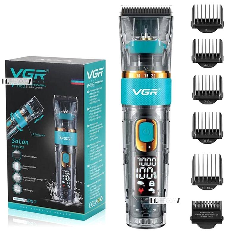 Машинку для стрижки, Мужской триммер для интимной стрижки, Тример для стрижки, NST VGR - это аккумуляторная беспроводная машинка для стрижки волос и бороды с футуристическим дизайном и фантастической точностью среза. В машинке сошлось воедино все самое необходимое для идеальной стрижки: нож из стали шириной 45 мм и высотой среза 0.5 мм, литий ионный аккумулятор без эффекта памяти, увеличенное время автономной работы (до 300 минут) и LCD дисплей. Преимущества: - Мощный надёжный роторный мотор с регулировкой оборотов от 5000 об./мин. до 7000 об/мин, который позволяет справиться с волосами различной густоты и текстуры; - Аккумуляторно-сетевой тип питания позволяет продолжать использовать машинку для стрижки клиента после полной разрядки аккумулятора; - Комплектуется 6-мя насадками длиной: 3 мм / 4-6 мм / 7-9 мм/ 10-12 мм / 16-18 мм и насадкой "thinner add-on" - более тонкой; - Регулировка длинны лезвия от 0.5 до 2,5 мм. Характеристики: - Номинальная мощность: 5 Вт; - Степень влагозащиты максимальная: IPX7; - LED дисплей с индикатором заряда аккумулятора и оборотов мотора; - Ширина ножа: 45 мм; - Время полной зарядки аккумулятора: 4 часа; - Время работы от аккумулятора при полном заряде: до 300 минут (заявлено производителем); - Тип аккумулятора: li-ion; - Емкость аккумулятора: 2600 мАч; - Регулировка оборотов машинки: 5000, 6000, 7000 об/мин; - Профессиональные лезвия; - Регулировка среза лезвий: *************************** мм; - Сменные насадки: 3 мм / 4-6 мм / 7-9 мм/ 10-12 мм / 16-18 мм и насадка "thinner add-on" - более тонкая. Комплектация: - Машинка для стрижки; - Масло для смазки лезвий; - Щеточка для очистки; - Насадки - 6 штук разной длины; - USB кабель для зарядки (позволяет заряжать прибор в автомобиле или от Power Bank); - Инструкция (на английском языке); - Фирменная заводская упаковка.