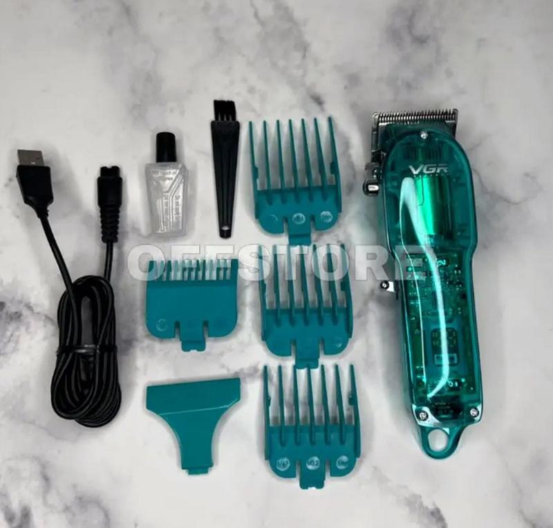 Тример для стрижки профисиональный, Хорошая машинка для стрижки бороды, Тример для стрижки волос, NST VGR - это профессиональная машинка для стрижки с комбинированным питанием от американского бренда Voyager. Отличная производительность, простота в управлении, а также эргономичный, прозрачный дизайн - всё самое необходимое для выполнения качественных стрижок. Данная модель оснащена мощным двигателем, регулируемым стальным ножевым блоком и удобным LED-экраном для еще большего удобства в использовании. В комплекте с машинкой идут пластиковые насадки, с которыми мастер получает 4 дополнительные длины среза: 3, 6, 9 и 12 мм. Насадки на 1,5 и 4,5 мм продаются отдельно. Также отдельно продаются наборы совместимых насадок или отдельные насадки. Ширина ножевого блока 46 мм, а минимальный срез 0,8 мм. Ножи установлены на специальным механизм регулировки длины среза волос на 4 фиксированные положения: 0,8 - 1,4 - 1,8 и 2 мм. «Гармошка» на нижнем ноже увеличивает отдачу тепла и нож дольше остается холодным при работе на потоке. Ножом с бороздами снимают массу волос, выполняют стрижки или плавные переходы. Работу машинки обеспечивает мотор с частотой 5000 оборотов в минуту. Такая скорость работы ножей позволит получать максимально чистый и эффективный срез волос без «пеньков» при любой манере работы с машинкой. Мотор хорошо отбалансирован в корпусе машинки, обеспечивает минимум вибраций и дискомфорта. Модель работает от встроенного Li-ion аккумулятора емкостью 1800 мАч, который обеспечивает 3 часа автономной работы машинки. Кроме того, Li-Ion аккумуляторы можно заряжать в любой момент, поэтому у Вас всегда будет заряженная машинка, готовая к работе. Так же есть возможность подключить машинку к адаптеру питания и продолжить работу от сети. Полная зарядка аккумулятора происходит за 3 часа. Машинка имеет эргономичный, удобный, прозрачный дизайн, а также углубления для пальцев на нижней части корпуса, чтобы кисть не так сильно уставала, во время продолжительной работы на потоке клиентов. Модель выполнена в пластиковом корпусе, вес машинки - всего 270 грамм. Обязательно присмотритесь к данной машинке, если подыскиваете надежный и выносливый инструмент, со стильным эргономичный дизайном и высокой производительностью. На верхней крышке корпуса снизу расположен информационный LED-дисплей, на котором выводиться информация об остаточном заряде аккумулятора в процентах, а также индикация заряда и индикация "своевременной смазки ножей". В комплекте поставляется кабель USB вместе с зарядным блоком. Особенности модели: - Низкий уровень шума, - Эргономичный, прозрачный дизайн, - Тип двигателя: роторный, - Тип питания: аккумулятор / сеть (комбинированное), - Тип аккумулятора: Li-ion без эффекта химической памяти, - Скорость мотора: 5000 об/минуту, - Время работы: 200 минут (более трёх часов), - Время полного заряда: 3 часа, - Материал ножей: Нержавеющая сталь, - Материал корпуса: Пластик, - Ширина ножевого блока: 46 мм, - Минимальная высота среза: 0,8 мм, - Максимальная высота среза: 2 мм, - Мощность: 5V, - Емкость аккумулятора: 1800 мАч, - LED-индикатор состояния аккумулятора и "своевременной смазки ножей", - Петелька для подвешивания, - Вес: всего 270 грамм, - Цвет: Зелёный прозрачный, Комплектация: - Профессиональная машинка VGR, - Сменные пластиковые насадки (4 шт.): 3 мм, 6 мм, 9 мм и 12 мм, - Масло для смазки, - Щеточка для очи