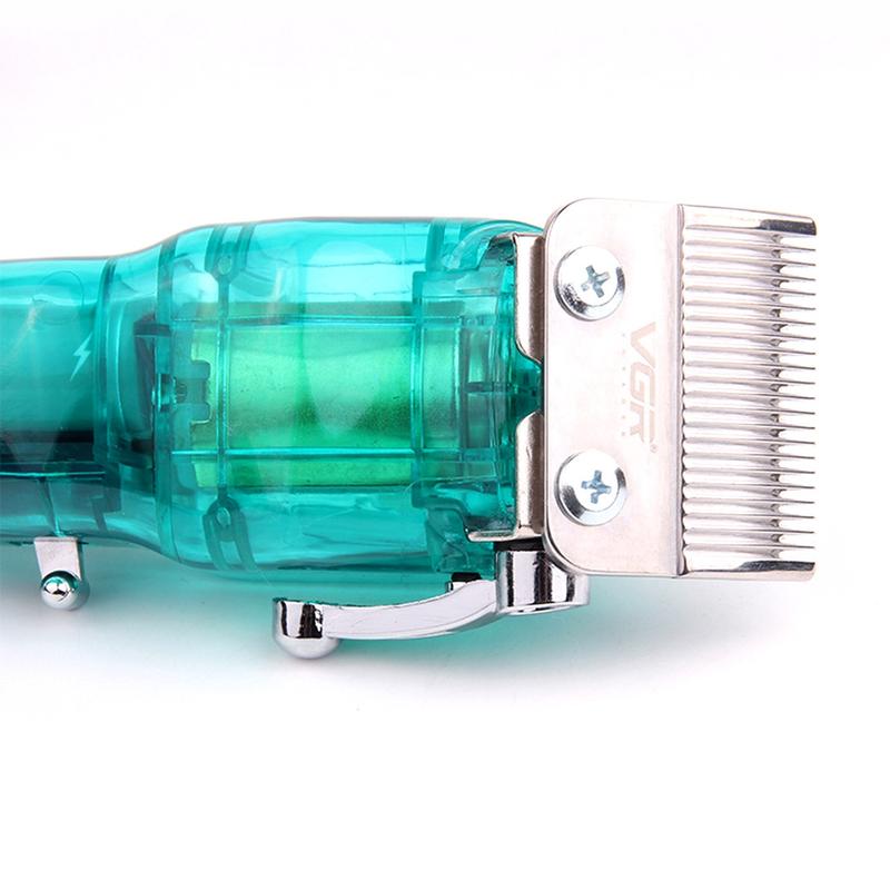 Триммер для стрижки на аккумуляторе, Тример для стрижки професійний, Тример для стрижки волосся, NST VGR - это профессиональная машинка для стрижки с комбинированным питанием от американского бренда Voyager. Отличная производительность, простота в управлении, а также эргономичный, прозрачный дизайн - всё самое необходимое для выполнения качественных стрижок. Данная модель оснащена мощным двигателем, регулируемым стальным ножевым блоком и удобным LED-экраном для еще большего удобства в использовании. В комплекте с машинкой идут пластиковые насадки, с которыми мастер получает 4 дополнительные длины среза: 3, 6, 9 и 12 мм. Насадки на 1,5 и 4,5 мм продаются отдельно. Также отдельно продаются наборы совместимых насадок или отдельные насадки. Ширина ножевого блока 46 мм, а минимальный срез 0,8 мм. Ножи установлены на специальным механизм регулировки длины среза волос на 4 фиксированные положения: 0,8 - 1,4 - 1,8 и 2 мм. «Гармошка» на нижнем ноже увеличивает отдачу тепла и нож дольше остается холодным при работе на потоке. Ножом с бороздами снимают массу волос, выполняют стрижки или плавные переходы. Работу машинки обеспечивает мотор с частотой 5000 оборотов в минуту. Такая скорость работы ножей позволит получать максимально чистый и эффективный срез волос без «пеньков» при любой манере работы с машинкой. Мотор хорошо отбалансирован в корпусе машинки, обеспечивает минимум вибраций и дискомфорта. Модель работает от встроенного Li-ion аккумулятора емкостью 1800 мАч, который обеспечивает 3 часа автономной работы машинки. Кроме того, Li-Ion аккумуляторы можно заряжать в любой момент, поэтому у Вас всегда будет заряженная машинка, готовая к работе. Так же есть возможность подключить машинку к адаптеру питания и продолжить работу от сети. Полная зарядка аккумулятора происходит за 3 часа. Машинка имеет эргономичный, удобный, прозрачный дизайн, а также углубления для пальцев на нижней части корпуса, чтобы кисть не так сильно уставала, во время продолжительной работы на потоке клиентов. Модель выполнена в пластиковом корпусе, вес машинки - всего 270 грамм. Обязательно присмотритесь к данной машинке, если подыскиваете надежный и выносливый инструмент, со стильным эргономичный дизайном и высокой производительностью. На верхней крышке корпуса снизу расположен информационный LED-дисплей, на котором выводиться информация об остаточном заряде аккумулятора в процентах, а также индикация заряда и индикация "своевременной смазки ножей". В комплекте поставляется кабель USB вместе с зарядным блоком. Особенности модели: - Низкий уровень шума, - Эргономичный, прозрачный дизайн, - Тип двигателя: роторный, - Тип питания: аккумулятор / сеть (комбинированное), - Тип аккумулятора: Li-ion без эффекта химической памяти, - Скорость мотора: 5000 об/минуту, - Время работы: 200 минут (более трёх часов), - Время полного заряда: 3 часа, - Материал ножей: Нержавеющая сталь, - Материал корпуса: Пластик, - Ширина ножевого блока: 46 мм, - Минимальная высота среза: 0,8 мм, - Максимальная высота среза: 2 мм, - Мощность: 5V, - Емкость аккумулятора: 1800 мАч, - LED-индикатор состояния аккумулятора и "своевременной смазки ножей", - Петелька для подвешивания, - Вес: всего 270 грамм, - Цвет: Зелёный прозрачный, Комплектация: - Профессиональная машинка VGR, - Сменные пластиковые насадки (4 шт.): 3 мм, 6 мм, 9 мм и 12 мм, - Масло для смазки, - Щеточка для очис