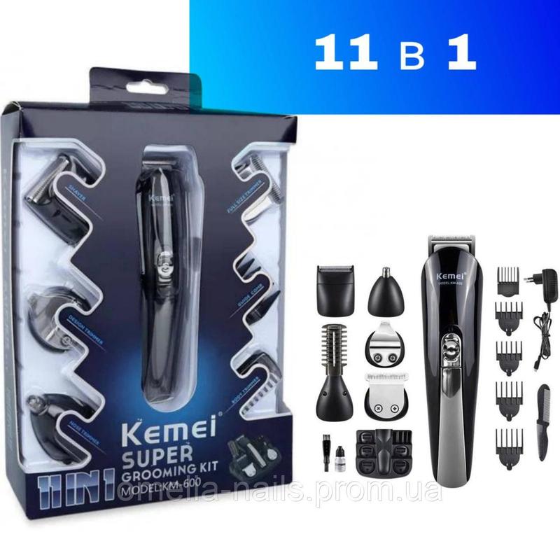 Машинка для стрижки бороды беспроводная (11в1), Машинка-тример для стрижки беспроводная, NST Характеристики - Назначение: Борода, Усы, Нос, Уши, Тело, Лицо; - Мощность: 5 W; - Тип питания: Аккумулятор; - Тип аккумулятора: NiMH; - Корпус: пластиковый; - Лезвия: нержавеющая сталь; - Насадки: 11 шт.; - Минимальная длина стрижки: 1 мм.; - Максимальная длина стрижки: 12 мм.; - Интервал длины: 1 мм.; - Возможность промывки ножей под водой: Да; - Самозатачивающиеся лезвия: Да; - Время непрерывной работы: 80 минут; - Время зарядки: 2 часа; - Длина сетевого шнура: 1 м.; - Цвет: Черный. Комплектация: 1. Триммер 2. 11 насадок 3. Масло для смазки; 4. Расческа; 5. Подставка; 6. Блок для зарядки прибора.