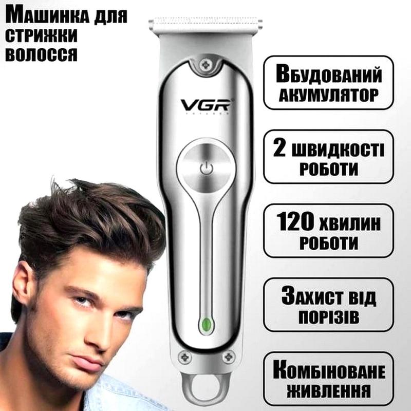 Машинка для стрижки и триммер в одном, Аккумуляторный триммер для стрижки, NST Триммер VGR является незаменимым инструментом в работе мастеров моделирования стрижек. Он предназначен для профессионального использования в парикмахерских, салонах красоты, барбершопах и разрешен к применению в домашних условиях. Триммер VGR отличается прочным корпусом, устойчивым к воздействию вибрации, низким уровнем шума, стильным дизайном, плавным ходом острых лезвий, удобством и длительным сроком эксплуатации. Особенности: - Со сменными насадками возможно придать идеальную форму бороде и усам; - Оборудован лезвиями из нержавеющей стали, гарантирующими аккуратный ровный срез она аккуратно срезает волоски, не оставляя каких-либо следов на чувствительной коже; - Аккумулятор позволят триммеру работать автономно в течение 120 минут; - Он функционален и прост в управлении; - Имеет прочный корпус, устойчивый к воздействию вибрации, низкий уровень шума. Ход - очень плаваний; - Имеет стильный дизайн; - Имеет 2 скорости стрижки; - Удобно ложится в руке и имеет лёгкий вес; - Подходит как для детей, так и для взрослых; - Идеальный помощник в командировках. Характеристики: - Фирма: VGR; - Тип: Триммер для бороды и усов; - Тип питания: Аккумулятор; - Мощность: 5 Вт; - Аккумулятор: 600 mAh; - 2 режима стрижки (меняется скорость работы лезвий); - Время зарядки: 1,5 часа; - Время работы от аккумулятора: около 120 минут; - Материал лезвий: нержавеющая сталь; - Регулировка длины: сменные насадки; - Количество сменных насадок: 3 штуки (1 мм, 2 мм, 3 мм); - Размер триммера: 13,5 х 2,9 х 3,1 см; - Вес триммера: 119 грамм. Комплектация: - Триммер VGR; - 3 насадки (1 мм, 2 мм, 3 мм); - Масло для смазки ножей; - Защитный колпачок на лезвия; - Щетка для очистки триммера; - USB кабель для зарядки (есть возможность заряжать в автомобиле или от Power Bank); - Инструкция (на английском языке); - Фирменная подарочная коробка.