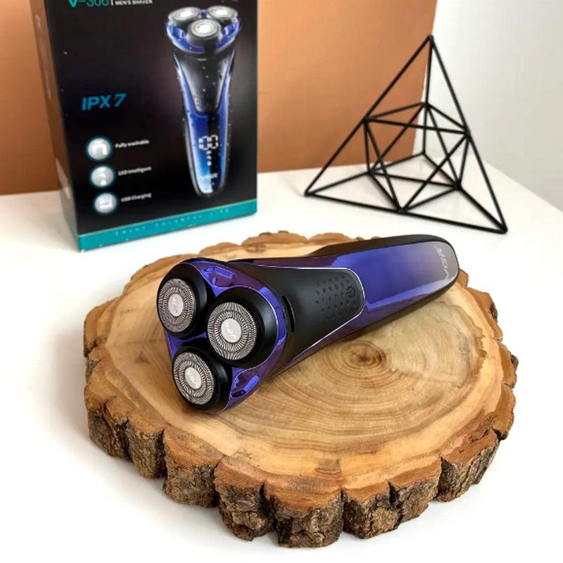 Электрическая бритва триммер для бороды, Бритва триммер аккумуляторный для бороды, NST Электробритва для влажного и сухого бритья VGR - это электрический станок для бритья. Он станет простой и функциональной альтернативой громоздким электробритвам Электробритва работает от встроенного аккумулятора, который необходимо заряжать по мере необходимости. Острые ножи станка бреют гладко, не оставляя порезов и раздражения на коже. Стильный современный дизайн станка понравится мужчине любого возраста. Компактный размер бритвы позволит брать с собой в длительные поездки, командировки или путешествия. Особенности: - Водонепроницаемый дизайн, может использоваться в ванной комнате; - Влажное и сухое бритье, можно использовать с кремом для бритья; - Быстрая и безопасная зарядка за 1,5 часа. Автономное время работы от аккумулятора составляет около 90 минут. Характеристики: - Фирма: VGR; - Мощность: 5 Вт; - Тип бритья: Сухое/влажное; - Время автономной работы от аккумулятора: 90 минут; - Быстрая зарядка: 1.5 часа; - Емкость аккумулятора: 800 mAh; - Бритвенная система: Роторная (вращательная); - Степень влагозащиты: IPx7; - 3 плавающих головки; - USB зарядка бритвы; - ЖК дисплей (показывает процент заряда батареи); - Откидной триммер; - Размер: 16 х 6 х 5 см; - Вес: 184 грамма. Комплектация: - Электробритва VGR V-306; - Защитная крышка для лезвий; - Щеточка для очистки бритвы после использования; - USB шнур для зарядки; - Инструкция (на английском языке); - Фирменная заводская упаковка.