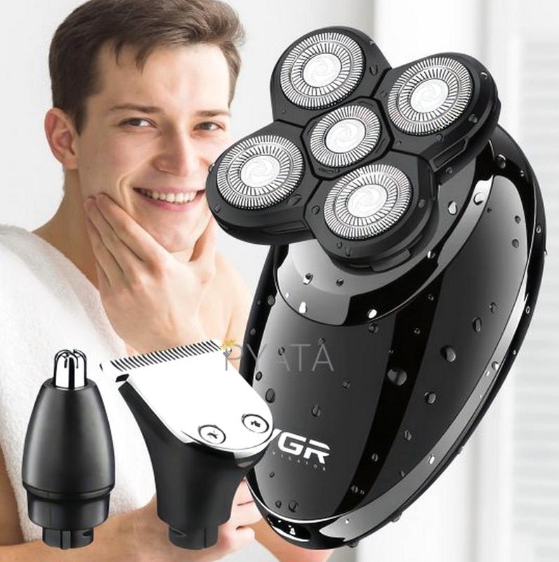 Качественный аккумуляторный триммер для стрижки волос, Качественный триммер для стрижки, NST Многофункциональная электробритва VGR незаменима, ежедневный помощник для каждого мужчины. Многофункциональность данной модели электробритвы не перестанет Вас удивлять и радовать. Превосходное качество исполнения и отличная работа роторного мотора легко справляется с любым типом щетины и волос. Компактный дизайн бритвы в сочетании с естественными движениями запястья значительно увеличивает эффективность круговых движений, необходимых для качественного бритья роторной бритвой. Бритва полностью повторяет контуры лица и легко скользит по коже. Значительно меньше в размерах, чем обычная бритва, это устройство увеличивает эффективность круговой техники движения, которая необходима для бритья с роторными бритвами. Особенности электробритвы: - Низкий уровень шума; - Подходит для сухой и влажной кожи; - Эргономичный дизайн и компактный размер; - Съемная бритвенная головка для легкой очистки и ухода; - Тонкий триммер для безопасной, нежной обрезки и формирования бороды; - Плавающий триммер для бакенбардов; - Водонепроницаемость. Можно мыть непосредственно с помощью водопроводной воды, что является безопасным и практичным; - Вращающаяся головка 5D. Двойное кольцо независимое плавающее лезвие. Умная плавающая система 360° подстроится под любой профиль лица; - Двойное кольцо для бритья волос, плавающая сеть ножей, сбривает ближе к корню волос, может быстро удалить волосы, не повредить кожу. Характеристики: - Тип: Роторная; - Мощность: 3 Вт; - Питание: Аккумулятор; - Тип аккумулятора: Li-ion; - Время автономной работы от аккумулятора: 50 минут; - Время до полного заряда аккумулятора: 2 часа; - Бритье: влажное/сухое; - Степень влагозащиты: IPX5 (fully washable); - Бритвенные головки: 5; - Плавающая головка; - Съемный триммер; - Размер: 11 х 6 х 7 см; - Вес: 174 грамм. Комплектация: - Электробритва VGR; - Защитная крышка на бритвенную головку; - Головка-триммер; - 4 насадки на триммер (3 мм, 6 мм, 9 мм, 12 мм); - Насадка для стрижки волос в носу и ушах; - Насадка для чистки лица; - Щеточка для чистки; - USB кабель для зарядки (позволяет заряжать прибор в автомобиле или от Power Bank); - Инструкция (на английском языке); - Фирменная упаковка.