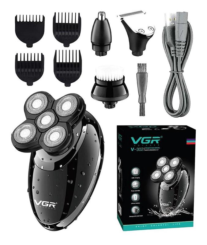 Триммер для бритья и стрижки, Триммер для стрижки волос и бороды, Триммер для стрижки и бритья, NST Многофункциональная электробритва VGR незаменима, ежедневный помощник для каждого мужчины. Многофункциональность данной модели электробритвы не перестанет Вас удивлять и радовать. Превосходное качество исполнения и отличная работа роторного мотора легко справляется с любым типом щетины и волос. Компактный дизайн бритвы в сочетании с естественными движениями запястья значительно увеличивает эффективность круговых движений, необходимых для качественного бритья роторной бритвой. Бритва полностью повторяет контуры лица и легко скользит по коже. Значительно меньше в размерах, чем обычная бритва, это устройство увеличивает эффективность круговой техники движения, которая необходима для бритья с роторными бритвами. Особенности электробритвы: - Низкий уровень шума; - Подходит для сухой и влажной кожи; - Эргономичный дизайн и компактный размер; - Съемная бритвенная головка для легкой очистки и ухода; - Тонкий триммер для безопасной, нежной обрезки и формирования бороды; - Плавающий триммер для бакенбардов; - Водонепроницаемость. Можно мыть непосредственно с помощью водопроводной воды, что является безопасным и практичным; - Вращающаяся головка 5D. Двойное кольцо независимое плавающее лезвие. Умная плавающая система 360° подстроится под любой профиль лица; - Двойное кольцо для бритья волос, плавающая сеть ножей, сбривает ближе к корню волос, может быстро удалить волосы, не повредить кожу. Характеристики: - Тип: Роторная; - Мощность: 3 Вт; - Питание: Аккумулятор; - Тип аккумулятора: Li-ion; - Время автономной работы от аккумулятора: 50 минут; - Время до полного заряда аккумулятора: 2 часа; - Бритье: влажное/сухое; - Степень влагозащиты: IPX5 (fully washable); - Бритвенные головки: 5; - Плавающая головка; - Съемный триммер; - Размер: 11 х 6 х 7 см; - Вес: 174 грамм. Комплектация: - Электробритва VGR; - Защитная крышка на бритвенную головку; - Головка-триммер; - 4 насадки на триммер (3 мм, 6 мм, 9 мм, 12 мм); - Насадка для стрижки волос в носу и ушах; - Насадка для чистки лица; - Щеточка для чистки; - USB кабель для зарядки (позволяет заряжать прибор в автомобиле или от Power Bank); - Инструкция (на английском языке); - Фирменная упаковка.