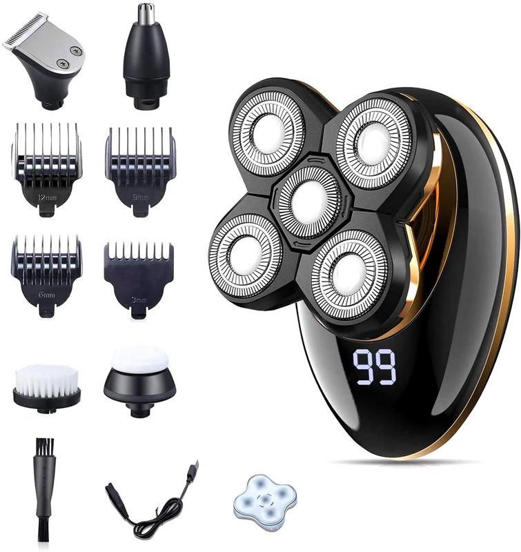 Бритва тример з насадками акумуляторна бездротова (5в1), Бритва чоловіча з плавальними насадками, NST Незамінний, щоденний помічник для кожного чоловіка. Багатофункціональність цієї моделі електробритви не перестане вас дивувати та тішити. Чудова якість виготовлення й чудова робота роторного мотора легко справляється з будь-яким типом щетини та волосся. Компактний дизайн бритви в поєднанні з природними рухами зап'ястя неабияк збільшує ефективність кругових рухів, необхідних для якісного гоління роторною бритвою. Бритва повністю повторює контури обличчя та легко ковзає шкірою. Набагато менше в розмірах, ніж звичайна бритва, цей пристрій збільшує ефективність кругової техніки руху, яка є необхідною для гоління з роторними бритвами. Особливості електробритви: - Низький рівень шуму; - Підходить для сухої, а також вологої шкіри; - Ергономічний дизайн і компактний розмір; - Індикатор заряджання та підсвічування; - Знімна головка для легкого очищення та догляду; - Тонкий тример для безпечного, ніжного обрізання та формування бороди; - Плавальний тример для бакенбардів; - Водонепроникність. Можна мити безпосередньо за допомогою водопровідної води, що є безпечним і практичним; - Обертова головка 5D. Подвійне кільце незалежне лезо, що плаває. Розумна плавальна система, 360° підлаштується під будь-який профіль обличчя; - Подвійне кільце для гоління волосся, плавальна мережа ножів, збере ближче до кореня волосся, може швидко видалити волосся, не пошкодити шкіру; Характеристики: - Колір: чорний із золотистим - Тип електробритви: роторна - Матеріал: АБС-пластик, метал - Кількість різальних головок: 5 - Світлодіодний дисплей: показує заряд акумулятора - Вологозахищений корпус IPX5 - Напруга: 5 В - Вага електробритви: 170 г - Розмір бритви (Д/Ш/В): 11х6х7 см - Розмір різальної 5D головки (Д/Ш): 5.5х5.5 см - Працює від: літієвої батареї - Заряджається від USB - Час заряджання: приблизно 2 години - Час роботи на одному заряді: 60 хвилин - Чоловіча багатофункціональна бритва: електробритва-тример для бороди, голови, носа + щіточки для чищення обличчя - Гоління вологе та сухе - Країна-виробник: Китай - Тип паковання: картонна Комплектація - Електробритва VGR - Насадка "тример" і чотири гребені-насадки (3, 6, 9, 12 мм) - Насадка на бритву для носа та вух - Щітка для глибокого очищення обличчя та силіконова - Захисна кришка для різальної головки - Щіточка для чищення електробритви: 1 шт - Інструкція англійською та ін. мовами - Картонне паковання