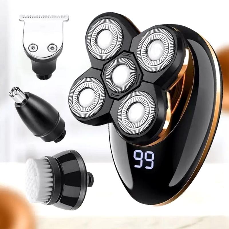 Машинка для стрижки волос под ноль (5в1), Машинка тример для стрижки волос и бороды, NST Незаменимый, ежедневный помощник для каждого мужчины. Многофункциональность данной модели электробритвы не перестанет вас удивлять и радовать. Великолепное качество исполнения и превосходная работа роторного мотора легко справляется с любым типом щетины и волос. Компактный дизайн бритвы в сочетании с естественными движениями запястья значительно увеличивает эффективность круговых движений, необходимых для качественного бритья роторной бритвой. Бритва полностью повторяет контуры лица и легко скользит по коже. Значительно меньше в размерах, чем обычная бритва, это устройство увеличивает эффективность круговой техники движения, которая является необходимой для бритья с роторными бритвами. Особенности электробритвы: - Низкий уровень шума; - Подходит для сухой, а также влажной кожи; - Эргономичный дизайн и компактный размер; - Индикатор зарядки и подсветка; - Съемная бритвенная головка для легкой очистки и ухода; - Тонкий триммер для безопасной, нежной обрезки и формирования бороды; - Плавающий триммер для бакенбардов; - Водонепроницаемость. Можно мыть непосредственно с помощью водопроводной воды, что является безопасным и практичным; - Вращающаяся головка 5D. Двойное кольцо независимое плавающее лезвие. Умная плавающая система, 360 ° подстроится под любой профиля лица; - Двойное кольцо для бритья волос, плавающая сеть ножей, сбреет более близко к корню волос, может быстро удалить волосы, не повредить кожу; Характеристики: - Цвет: черный с золотистым - Тип электробритвы: роторная - Материал: АБС-пластик, металл - Количество режущих головок: 5 - Светодиодный дисплей: показывает заряд аккумулятора - Влагозащищенный корпус IPX5 - Напряжение: 5 В - Вес электробритвы: 170 г - Размер бритвы (Д/Ш/В): 11х6х7 см - Размер режущей 5D головки (Д/Ш): 5.5х5.5 см - Работает от: литиевой батареи - Заряжается от USB - Время зарядки: около 2-х часов - Время работы на одном заряде: 60 минут - Мужская многофункциональная бритва: электробритва-триммер для бороды, головы, носа + щеточки для чистки лица - Бритье влажное и сухое - Страна производитель: Китай - Тип упаковки: картонная Комплектация: - Электробритва VGR - Насадка "триммер" и четыре гребня-насадки (3, 6, 9, 12 мм) - Насадка на бритву для носа и ушей - Щетка для глубокого очищения лица и силиконовая - Защитная крышка для режущей головки - Щеточка для чистки электробритвы: 1 шт - Инструкция на английском и др. языках - Картонная упаковка