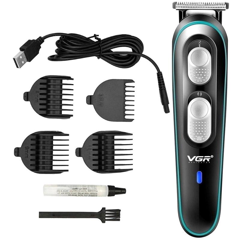 Беспроводна машинка для стрижки волос, Бритвы машинки для стрижки, Машинка для стрижки, NST Триммер VGR является незаменимым инструментом в работе мастеров моделирования стрижек. Он предназначен для профессионального использования в парикмахерских, салонах красоты, барбершопах и разрешен к применению в домашних условиях. Триммер VGR отличается прочным корпусом, устойчивым к воздействию вибрации, низким уровнем шума, стильным дизайном, плавным ходом острых лезвий, удобством и длительным сроком эксплуатации. Особенности: - Со сменными насадками возможно придать идеальную форму бороде и усам; - Оборудован лезвиями из нержавеющей стали, гарантирующими аккуратный ровный срез она аккуратно срезает волоски, не оставляя каких-либо следов на чувствительной коже; - Аккумулятор позволят триммеру работать автономно в течение 120 минут; - Он функционален и прост в управлении; - Имеет прочный корпус, устойчивый к воздействию вибрации, низкий уровень шума. Ход - очень плаваный; - Имеет стильный дизайн; - Удобно ложится в руке и имеет лёгкий вес; - Подходит как для детей, так и для взрослых; - Идеальный помощник в командировках. Характеристики: - Тип питания: Аккумулятор; - Тип аккумулятора: Li-ion; - Мощность: 5 Вт; - Аккумулятор: 1000 mAh; - Время зарядки: 1,5 часа; - Время работы от аккумулятора: около 120 минут; - Материал лезвий: нержавеющая сталь; - Регулировка длины: сменные насадки; - Кнопка регулировки длины среза; - Количество сменных насадок: 4 штуки (3 мм, 6 мм, 9 мм, 12 мм); - Размеры триммера: 16 х 4,1 х 4,5 см; - Вес: 124,5 гр. Комплектация: - Триммер VGR; - 4 насадки (3 мм, 6 мм, 9 мм, 12 мм); - Масло для смазки ножей; - Щетка для очистки триммера; - USB кабель для зарядки (есть возможность заряжать в автомобиле); - Инструкция (на английском языке); - Фирменная подарочная коробка.