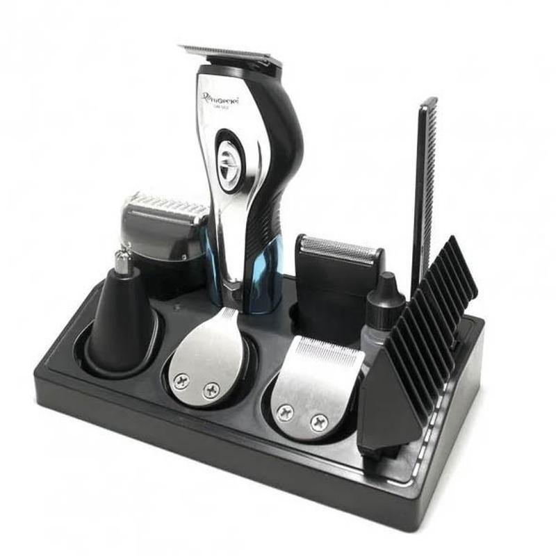 Триммер для стрижки волос и бритья, Триммер для стрижки бритья (11в1), NST Набор для стрижки волос и бороды 11 в 1 Включает в себя полную комплектацию всех необходимых аксессуаров для ухода за волосами от головы до ног. Включает в себя бритву, триммер для носа и ушей, машинку для стрижки с 3 сменными насадками (3мм, 6мм, 9мм), насадку для подравнивания бороды и бакенбард. Имеет 2 скорости работы в турбо режиме. В комплекте имеется специальная насадка-триммер для комфортной стрижки и удаления волос на теле. При помощи тонкой насадки для бороды и бакенбард, вы сможете делать различные стильные рисунки. Для поддержания максимальной гигиены, прибор можно мыть под струёй воды. В комплекте зарядное устройство, шнур с сетевым адаптером 220V. Удобная подставка для вертикального хранения. Расческа, щеточка для очистки и масло для лезвий также в комплекте. Комплектация и характеристики: - Питание: от аккумулятора до 90 минут работы, а также от сети 220В - Головки: машинка-триммер для стрижки, бритва, машинка для стрижки волос носа и ушей, точная окантовочная насадка для узоров, бороды и бакенбард, насадка-триммер для тела - Насадки: 3 насадки 3, 6, 9мм, + насадка для точного триммера 3мм - Комплектация: Машинка, съемный триммер для стрижки, 4 насадки, съемный окантовочный триммер, съемный триммер для носа и ушей, съемный триммер для точного формирования контуров, съемная сеточная бритва, съемный триммер для тела, зарядное устройство + кабель, кисточка для чистки, расческа, подставка, инструкция.