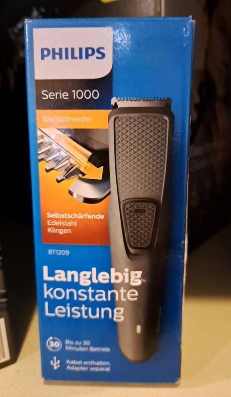 тример для бороди Philips Series 1000 Тип: триммер для бороды и щетины с USB-зарядкой. Лезвия: самозатачивающиеся лезвия из нержавеющей стали. Время работы: до 30 минут автономной работы после 8 часов зарядки. Особенности: поставляется с USB кабелем для зарядки; адаптер не входит в комплект.