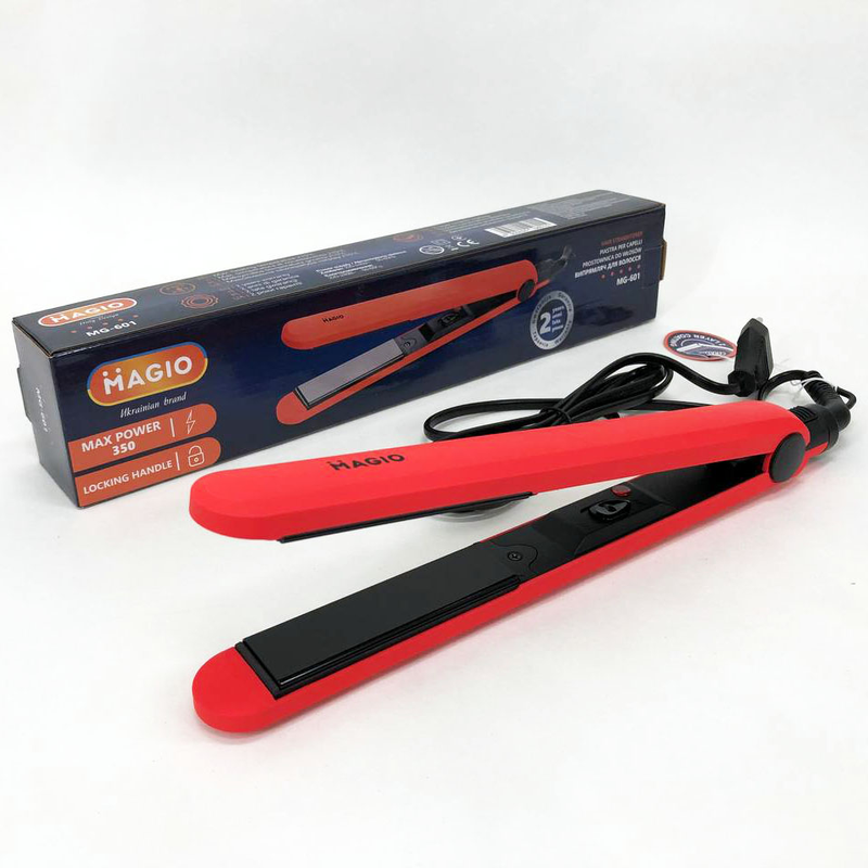 Випрямляч для волосся Magio MG-601 має стильний тонкий корпус. Абсолютна простота – ключова особливість моделі. Корпус виконаний з приємного на дотик високоякісного пластику, який запобігає плавленню при нагріванні та гарантує тривалий термін служби інструменту. Матеріал поверхні робочих пластин – двошарова кераміка, що впливає не тільки на кінцевий результат зачіски, але й на здоров’я волосся. Такий вид пластин завдає найменшої шкоди, швидко та рівномірно нагріваються, легко ковзають по волоссю та запобігають електризації. Випрямляч оснащений подовженими (90 мм) нагрівальними пластинами шириною 24 мм, які дозволяють досягти ідеальних результатів за короткий час. Випрямляч швидко нагрівається і буде готовий до використання менше ніж за хвилину. Петелька для підвішування і шнур, що обертається на 360° довжиною 1,8 м створюють додаткову зручність при використанні. Характеристики: Тип: випрямляч для волосся Тип управління: механічний Для створення: гладкої зачіски Номінальна потужність: 30-35 Вт Максимальна потужність: 35 Вт Час нагріву: 90 сек Режими та функції: захист від перегріву Матеріал покриття пластин: двошарова кераміка Замикаючий механізм для безпечного та зручного зберігання Поворотний шнур Плаваючі пластини Протиковзне покриття ручки Пітелька для підвішування Розміри пластин (ДхШ): 9х2.4 см Колір: червоний Виробник: Magio