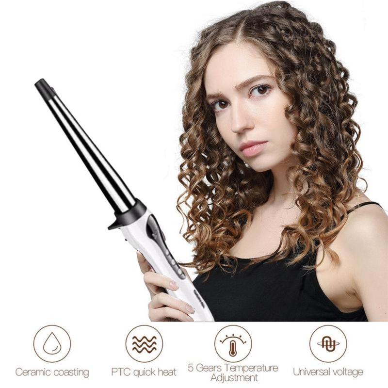 Конусная плойка GM - 403 - создаст уникальные локоны, ведь благодаря спец. барабану она самостоятельно сделает всю работу за вас, Вам не нужно будет каждое прядь накручивать на плойку, это преимущество плойки значительно облегчит процесс создания красивой прически! А для того, чтобы Ваши волосы выглядели всегда отлично и здорово, плойка имеет температурный режим нагрева до 230 градусов и это считается оптимальным режимом, для того чтобы волосы оставались здоровыми и не испортировались структура волос. Такой плойкой можно работать с любыми типами волос и результат будет великолепным! Основные технические особенности: мощность 30 W; источник питания 220-240 В 50-60 Гц; девять температурных режимов (от 120°C до 200°C); материал изделия – турмалин; шнур длиной - 1,8 м; вращающийся на 360 шнур; кнопка регулировки температуры; кнопка On/Off.