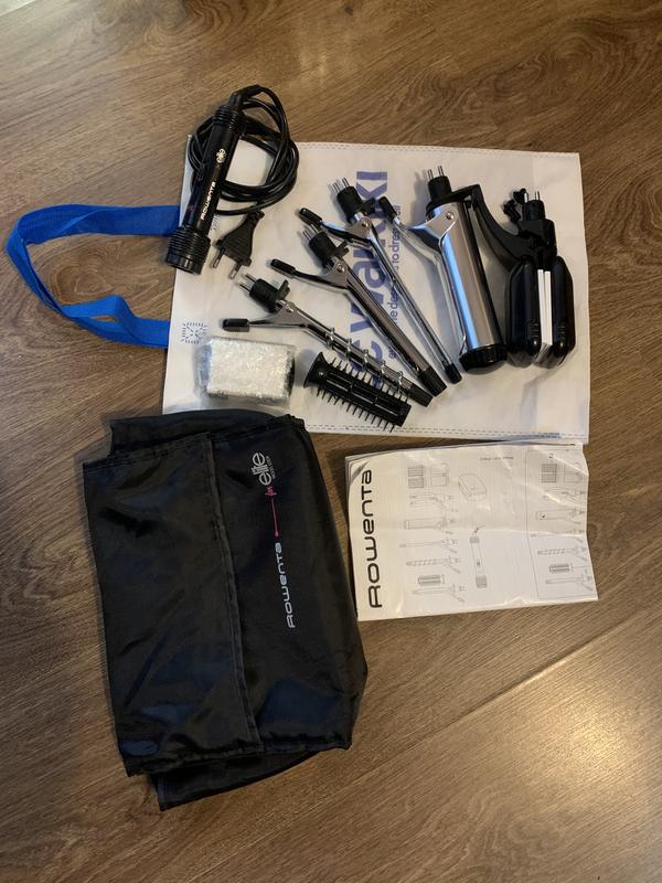Rowenta Elite model look Стан:10/10 Комплект: сумка для обладнання, документи, Набір плоєк для укладення волосся, Електрична штекерна ручка, з кнопкою вмикання та переключення. 6 - зʼємних насадок 7- нажаль пошкоджена, але йде у комплекті.