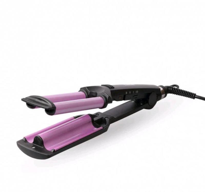 Плойка для волос kemei km-2022 3 волны черный с розовым