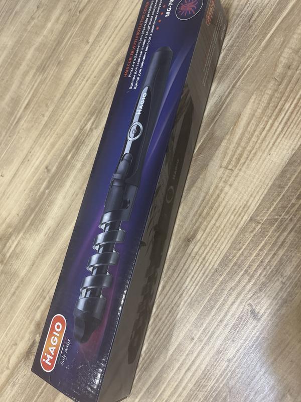 Щипці, плойка для волосся. Гарно крутить локони. Покриття нагрівальної пластини - турмалінова кераміка. Діаметр нагрівальної пластини - 19мм. Час нагріву - 3 хв. Температура нагріву 180С. Номінальна потужність - 30Вт.