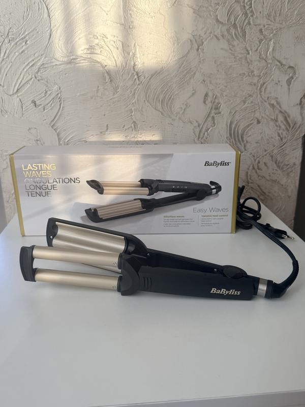 Плойка BaByliss Easy Waves C260E подвійна хвиля. Керамічне покриття, рівномірний розподіл температури, нагрів до 200° 3 температурні режими 160°-200°С Швидкий нагрів Ізолюючий наконечник Автоматичне виключення Кнопка вкл./вимк. Термостійкий килимок Обертаючий шнур 1,8м