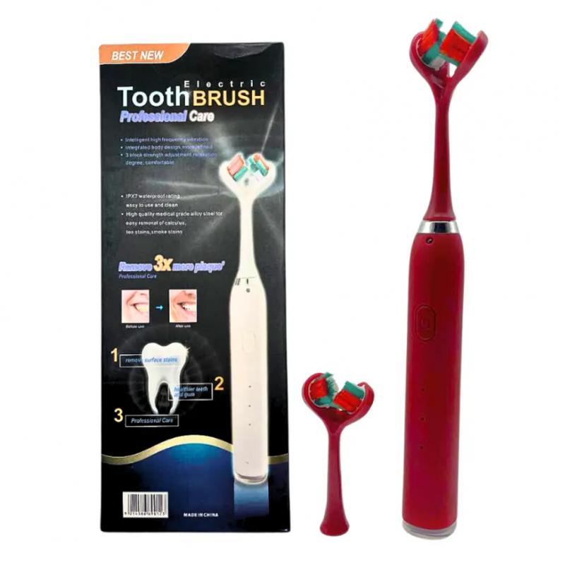 Ультразвуковая зубная щетка электрическая с двойной головкой на 3 режима красная pro_249