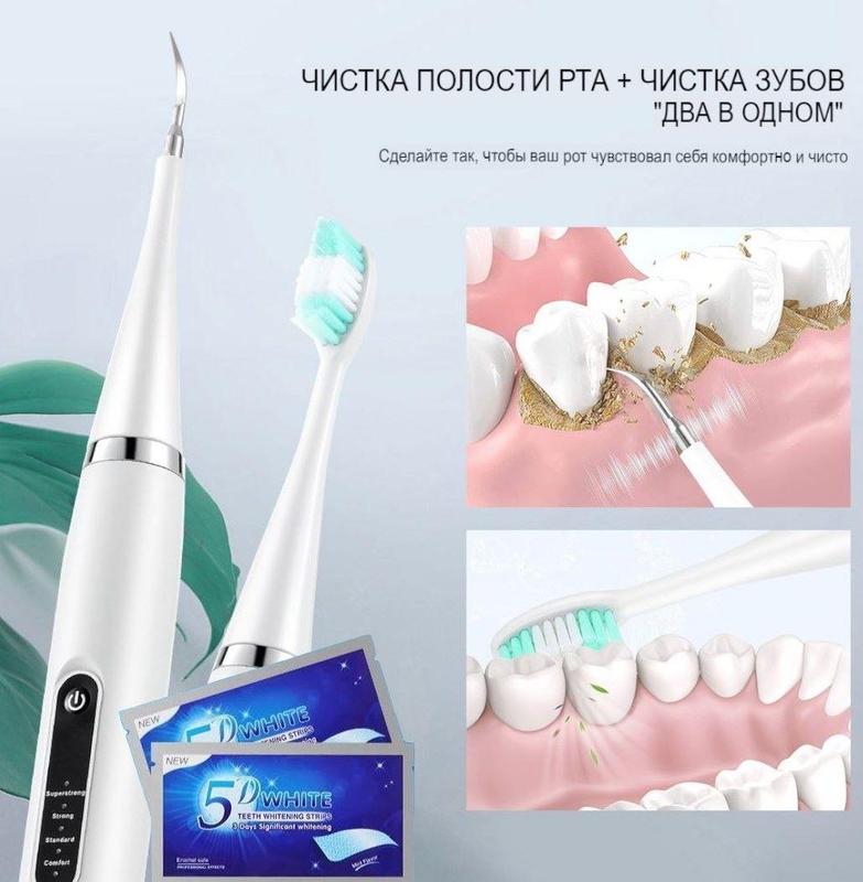 ***Ультразвуковая зубная щетка-скалер для удаления зубного камня и отбеливание зубов - это автономный электронный скалер для домашнего использования, который поможет отлично вычистить Ваши зубы, а также удалить наддесневые отложения, зубные камни и очистить межзубные промежутки. Эта щетка-скалер легко удаляет жесткий зубной камень предотвращая болезни десен. ***Как снять зубной камень дома? Для того чтобы убрать зубной налет, камень в домашних условиях вам необходим скалер. Стоматологический скалер механически влияет на отложение зубного налета за счет высокочастотных вибраций, благодаря чему зубной камень можно удалить собственными руками в домашних условиях. *** Функции и особенности: * Высокочастотная вибрация * Водонепроницаемый IPX6 * 5 режимов переключения передач, управление одной кнопкой * Световой индикатор регулировки переключения передач * Оснащен сменной стальной насадкой для чистки зубного камня и 2-мя зубными щетками ***Комплектация: * Скаллер * Крючкообразная чистящая головка * Плоская шлифовальная головка * 2-головки зубной щетки * Стоматологическое зеркало * USB кабель для зарядки * Руководство пользователя (на английском языке) Модель товара: Стоматологический скалер L-C156X Размер продукта: 21,5*2,5*2,5 см Размер цветной коробки: 24*9,5*3 см Вес нетто одного продукта: 60,5 г Способ зарядки: USB Емкость: 500 Частота вибрации: 31000 раз/мин. Материал изделия: АБС-пластик + насадка для чистки зубов из нержавеющей стали. Уровень водонепроницаемости: lpx6 Номинальный ток: 200 мАч Номинальное напряжение: 3,7 В Мощность: 0,6 Вт. Время зарядки: около 2 часов.