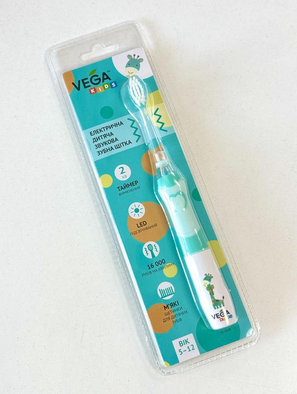 Електрична зубна щітка Vega Kids VK-400B LIGHT-UP – просте та якісне очищення дитячих зубів та ясен без зусиль та навичок🧸 🪥Дитячий дизайн з кольоровим підсвічуванням перетворює нудну чистку зубів на захоплююче заняття. 🪥 До 120 днів термін служби батарейок. 🪥 Технологія Sonic Smart – 17 000 поступальних рухів за хвилину, які забезпечують просте та ефективне очищення. 🪥 Високоякісні нейлонові щетинки DuPont для безпечного очищення зубів та ясен. 🪥 Ергономічна головка щітки для дбайливого очищення та захисту зубів з 5 років. 🪥 2-хвилинний таймер з 30-секундним інтервалом для більш якісного та ретельного очищення. 🪥 Щітка повністю захищена від попадання пилу і може бути занурена у воду на певний час. Насадки - 1 шт