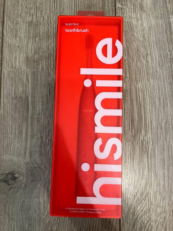 Электрическая зубная щетка Hismile в ярком красном цвете. Нова. В комплекте зубная щетка, насадка и шнур для зарядки. Красная электрическая зубная щетка Hismile - стильная, эффективная и удобная в использовании. • 3 режима чистки: Gentle, Everyday, Intense • Мягкие конусообразные щетинки - деликатное, но глубокое очищение • Встроенный таймер и автоматическое отключение через 2 минуты • Память последнего режима • USB-C зарядка - идеально для путешествий • Подходит для взрослых и детей Красная электрическая зубная щетка Hismile - стильная, эффективная и удобная в использовании. • 3 режима чистки: Gentle, Everyday, Intense • Мягкие конусообразные щетинки - деликатное, но глубокое очищение • Встроенный таймер и автоматическое отключение через 2 минуты • Память последнего режима • USB-C зарядка - идеально для путешествий • Подходит для взрослых и детей