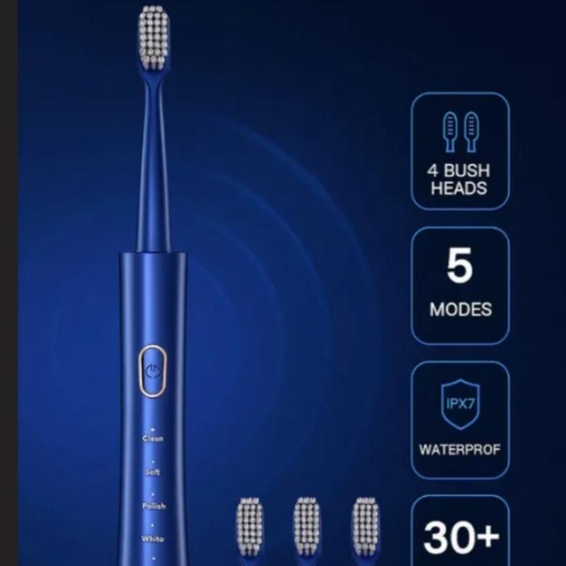 Ультразвукова зубна щітка нового покоління! Ваші зуби ще ніколи не були такими чистими Переваги, які вас здивують: 1 заряд — до 30 днів роботи Водонепроникність IPX7 — можна використовувати навіть у душі Акумулятор з напругою DC 3.7V 5 режимів роботи: Clean — щоденна чистка Mildeep — делікатна для чутливих зубів White — поліпшене відбілювання Massage — турбота про ясна Polish — глибоке полірування У комплекті 4 насадки для різних потреб Стильний синій або білий корпус Заряджається швидко — працює довго