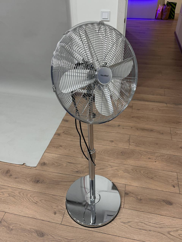 Настольный вентилятор Hausmark HTF-1225IX имеет классическую конструкцию с диаметром лопастей 30 см, высотой 43 см и максимально устойчивым основанием.